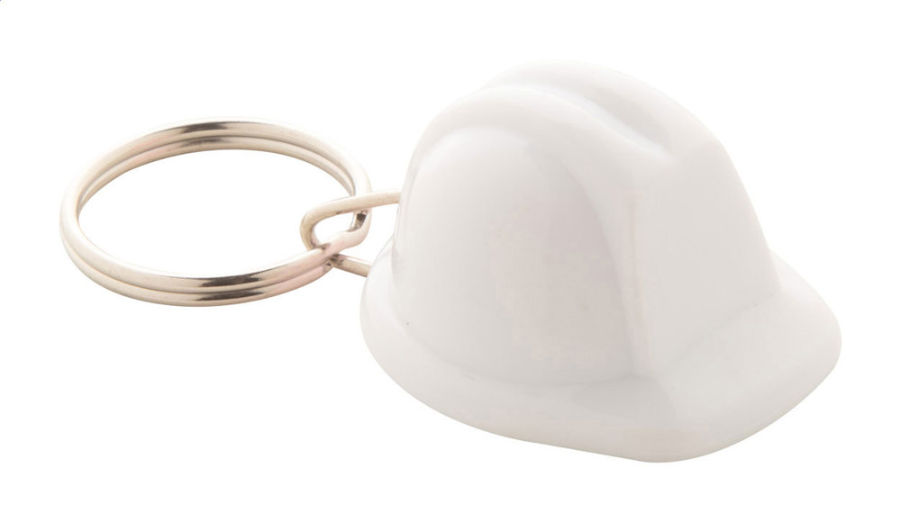 Plastic sleutelhanger in de vorm van een veiligheidshelm.