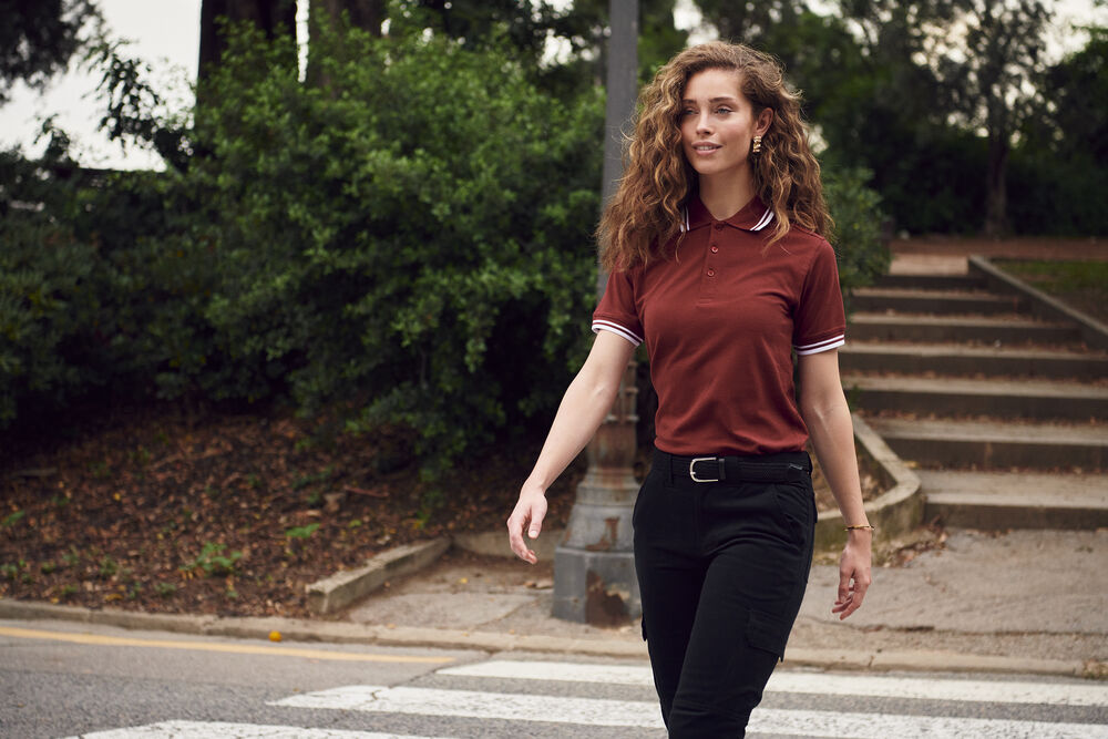 Moderne polo piqué met opvallende contrasterende details in de kraag en bij de mouwen. De polo is...meer
