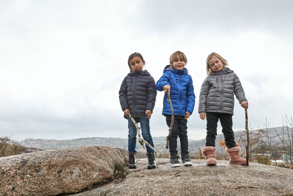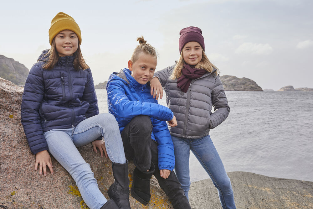 Moderne jas voor kinderen gevoerd met imitatie dons voor een aangenaam warm gevoel. De jas is voorzien van een afneembare capuchon, rits aan de voorzijde, twee steekzakken met rits, een borstzak met rits en twee binnenzakken. Verder is de jas voorzien van een AC coating voor bescherming tegen wind en regen.