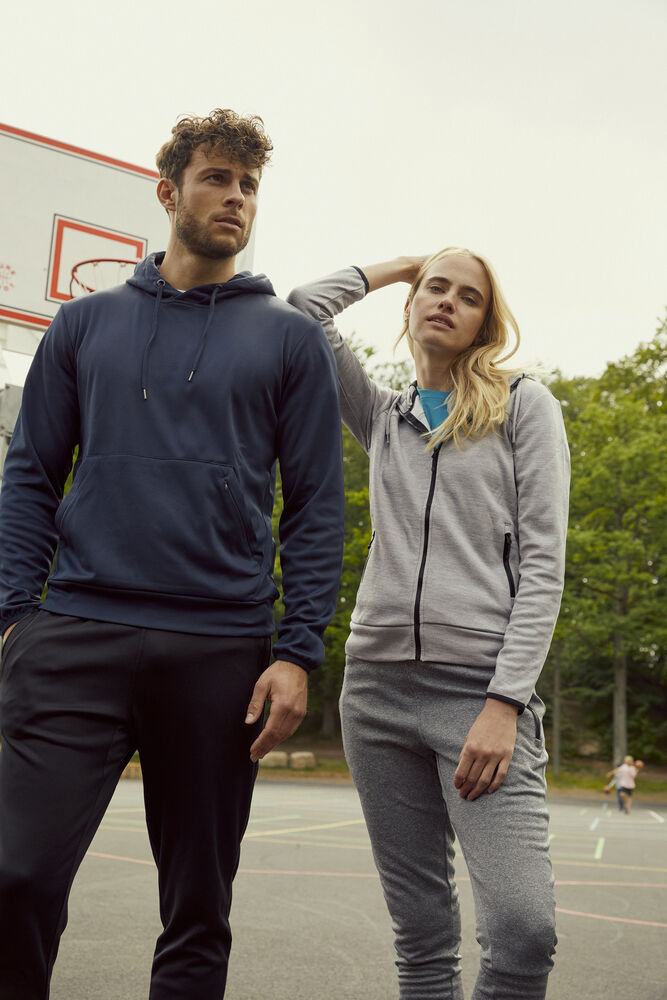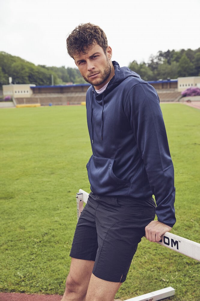 Hoogwaardige trui met capuchon en een moderne pasvorm. De trui is gemaakt van zacht, soepel en comfortabel polyester. De capuchon is gemakkelijk te verstellen middels een trekkoord. Verder heeft de trui een buidelzak op de voorzijde met een extra zak met rits. De behandeling met softener zorgt ervoor dat de trui zacht aanvoelt.