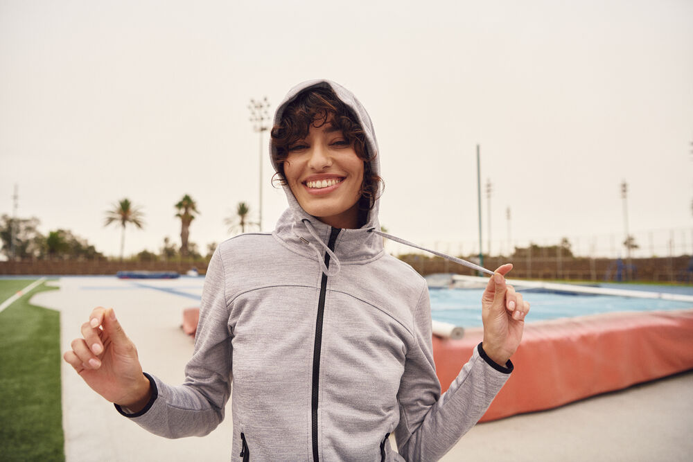 Hoogwaardig capuchonvest met een moderne uitstraling. Het vest is gemaakt van zacht, soepel en comfortabel polyester. De capuchon is gemakkelijk te verstellen middels een trekkoord. Verder heeft het vest twee voorzakken met rits, binnenzakken en een handige doorvoer voor bijvoorbeeld een koptelefoon. Het vest sluit mooi aan op de Odessa broek. De behandeling met softener zorgt ervoor dat de sweater zacht aanvoelt.