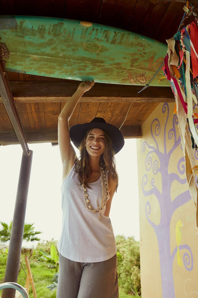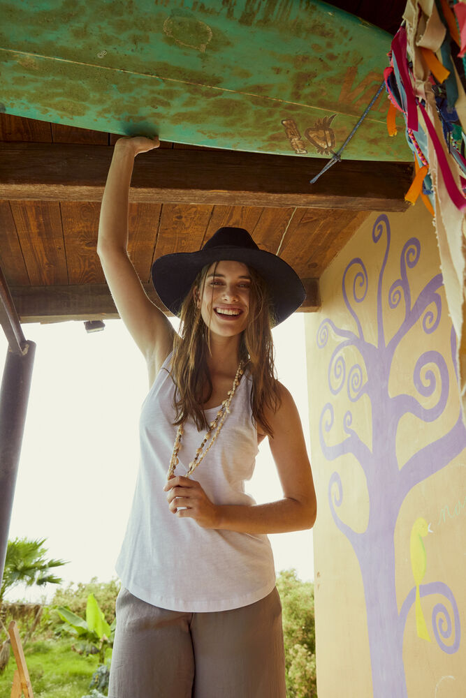 Modern aansluitende tanktop van zeer hoogwaardig slub ringgesponnen jersey katoen. Met...meer