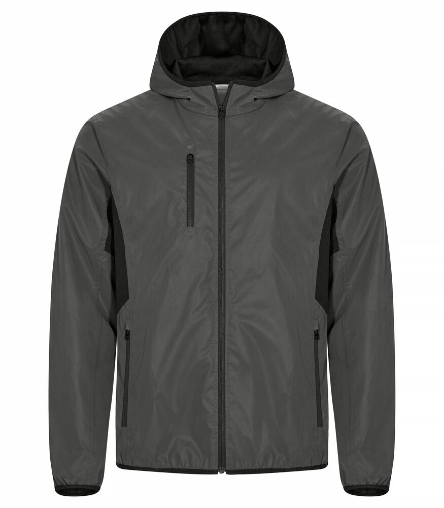 Functioneel reflecterend windjack met capuchon. Dit jack heeft een bird's eye-voering in de capuchon en bij de oksel voor meer comfort en ademend vermogen. Voorzien van twee zijzakken en borstzak met rits en twee binnenzakken. Afgewerkt met contrastband rond de capuchon, boord en mouwen.