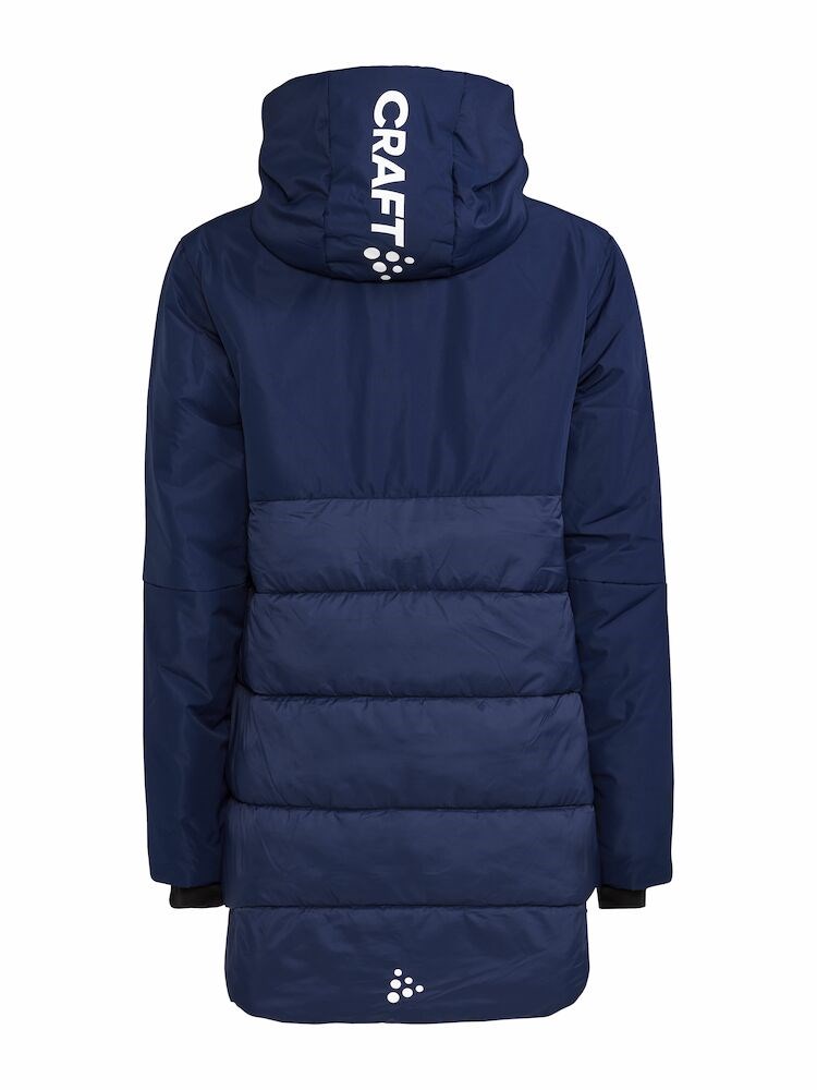 who need to keep warm in cold conditions. The parka is insulated with 100% recycled polyamid and has a mix of quilted and unquilted surfaces, which provide plenty of space for crests and sponsor logos. In addition, the garment features a two-way zipper, two side pockets and a hood.