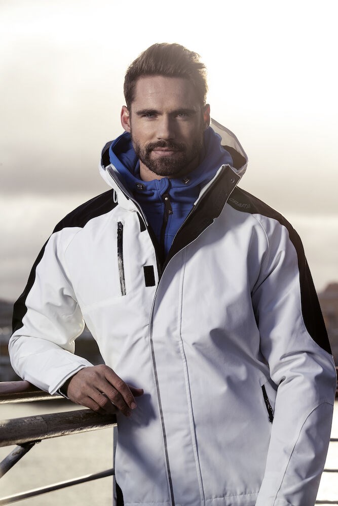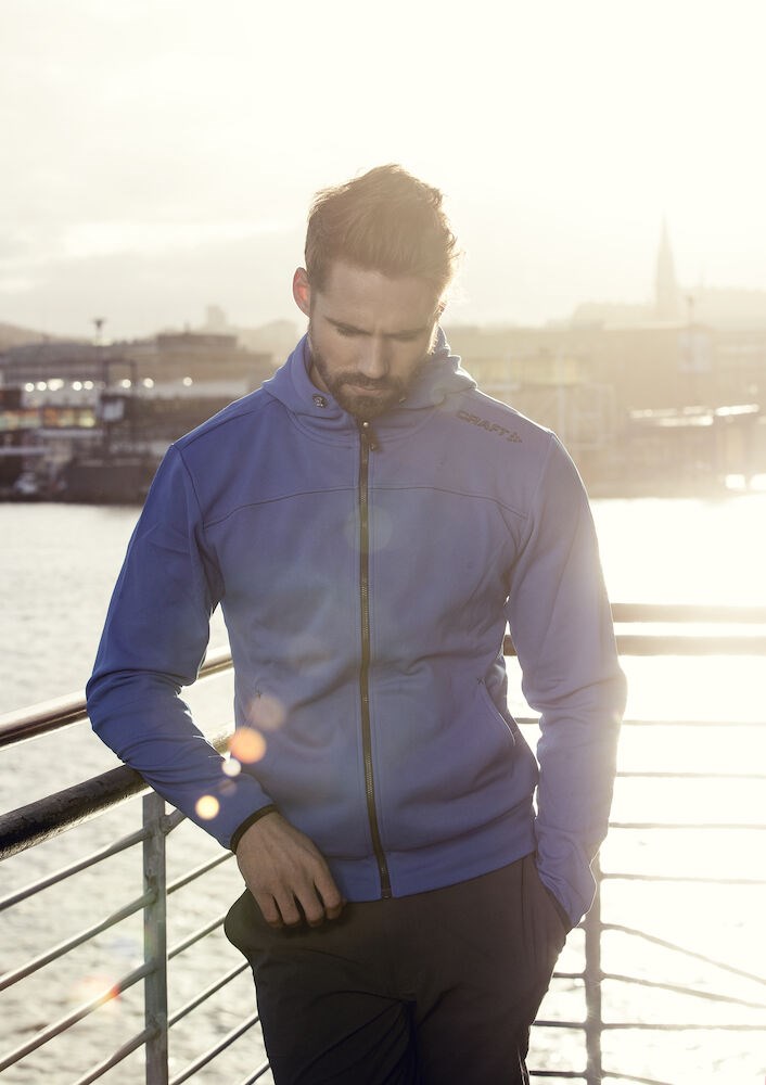 Comfortable hood jacket made of soft, elastic and functional polyester. Features hood with drawcord and two pockets.