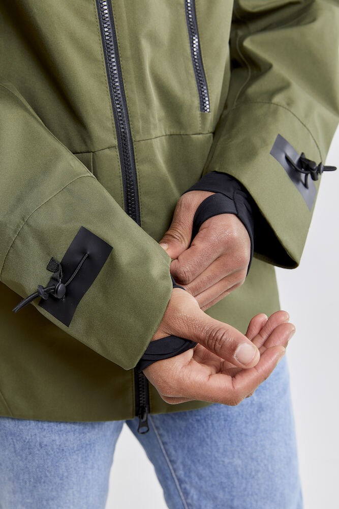 Versatile 3-layer shell jacket with great weather protection that is just as home in the city as in the wilderness. Comes with fully taped seams, armpit ventilation, sleeve pocket, water-resistant zippers, laser-cut details and adjustable hood.