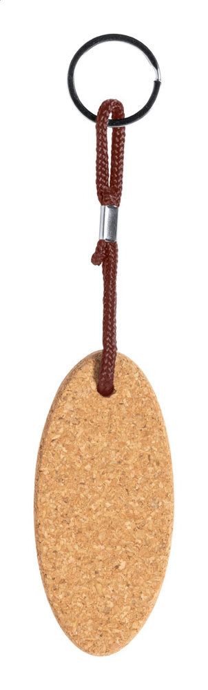 Drijvende sleutelhanger van natuurkurk met koord en metalen ring.