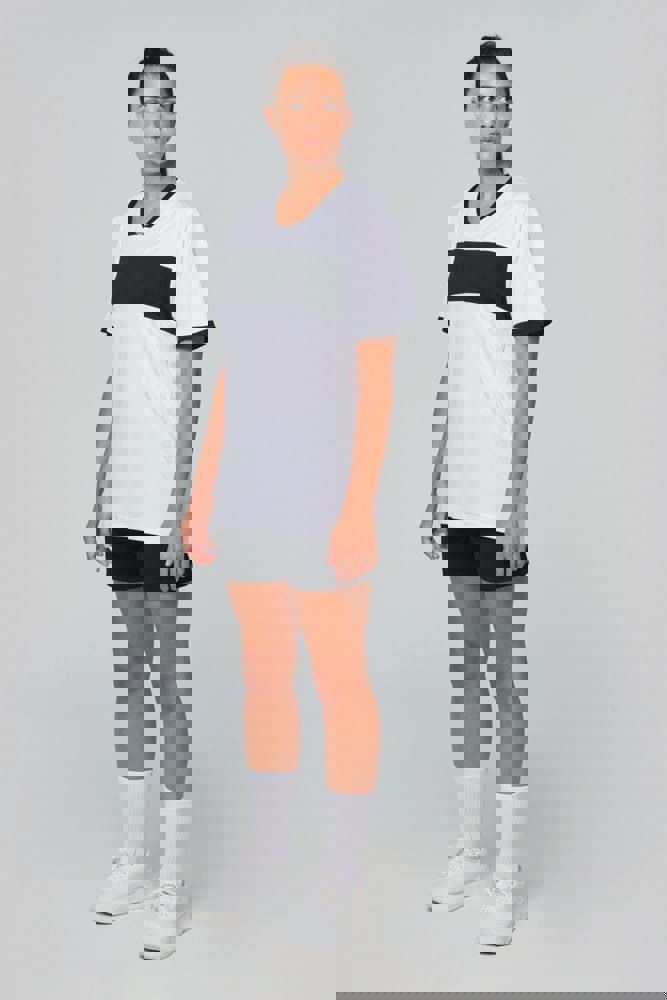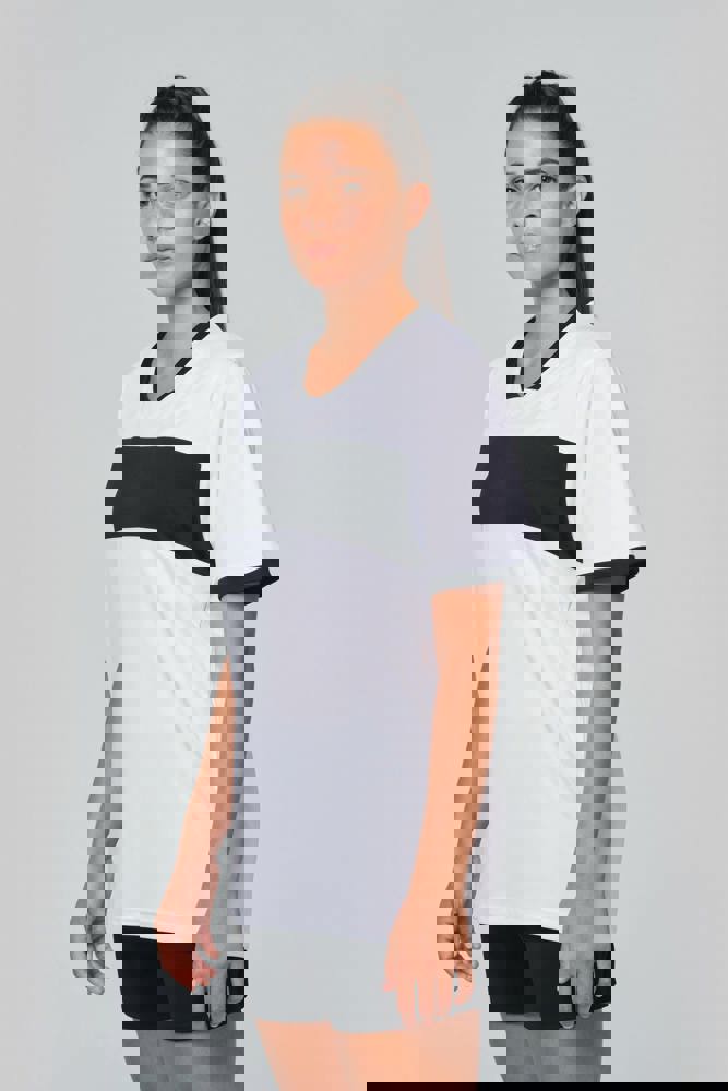 100% interlockpolyester. V-hals met nektape. Ingezette mouwen. Contrasterende borstinzetstukken,...