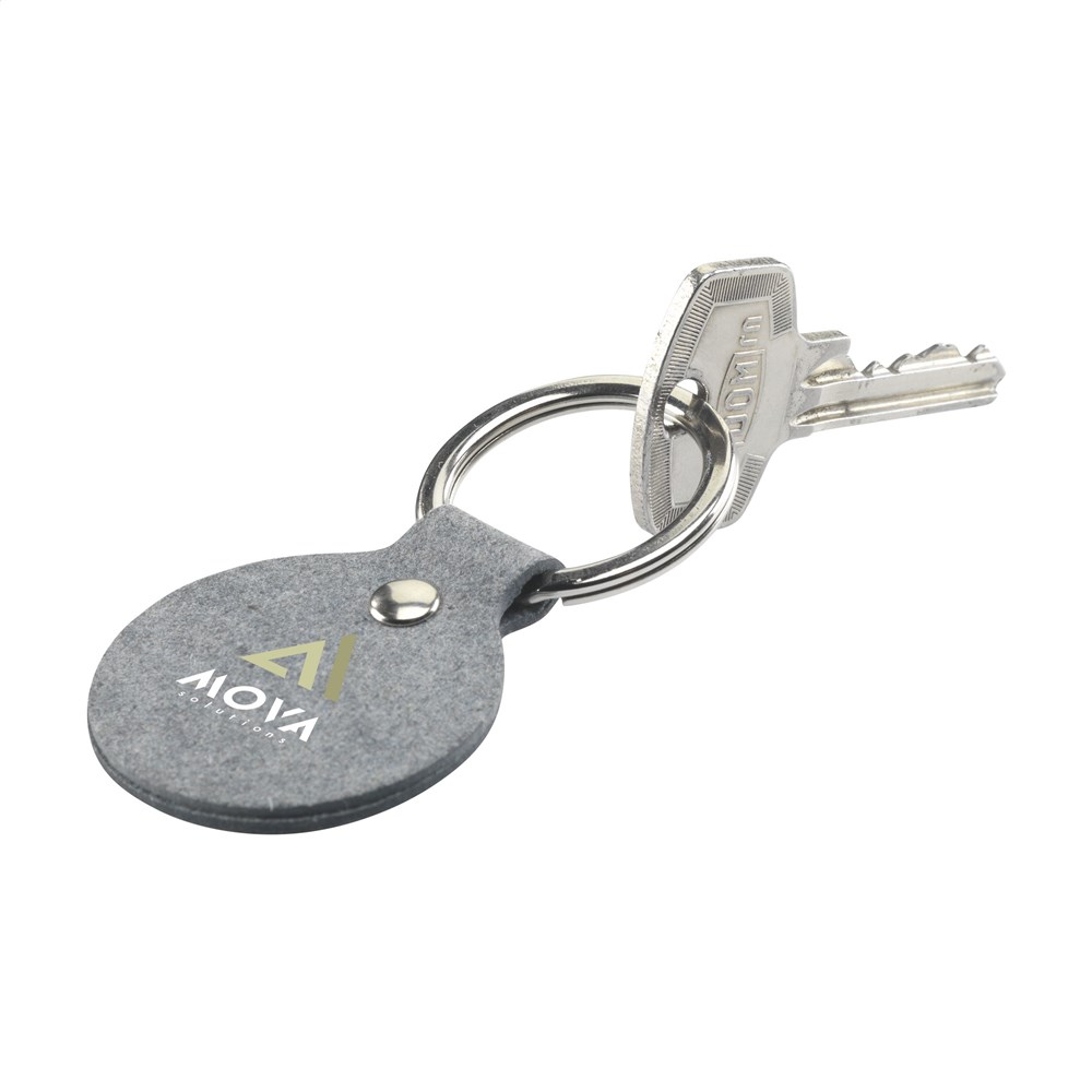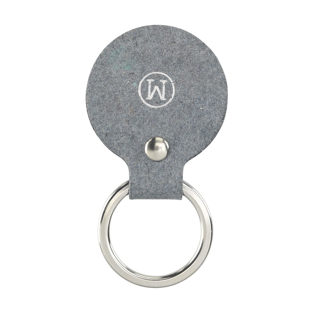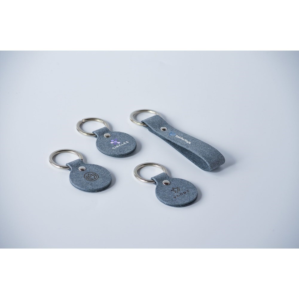 Sleutelhanger van het merk MADE out of. Met stevige metalen sleutelring. De sleutelhanger is gemaakt van gerecyclede denimvezels: 70% denimafval, 25% bindmiddelen en 5% plantaardige toevoegingen. Het heeft een fijne, maar toch cool ogende structuur. De fijne vezels maken het flexibele materiaal vergelijkbaar met echt leer. Het is 100% recyclebaar en kan herhaaldelijk worden hergebruikt. Door het gebruik van denim waste, voornamelijk uit Nederland en Duitsland, heeft het product een blauwe kleur. Een recyclebaar product met een eigentijdse uitstraling. Handgemaakt. Dutch design. Made in Holland.