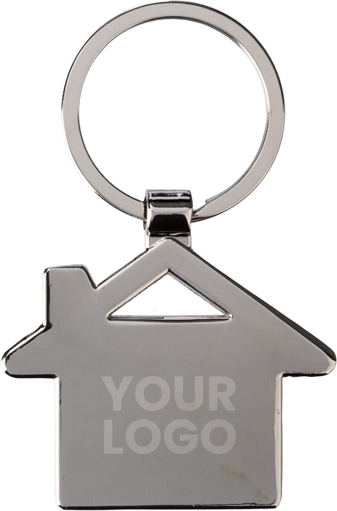 Zinklegering sleutelhanger met bamboe huis-detail en metalen ring. Gat aan de bovenkant....