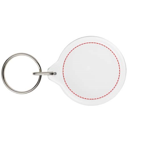Doorzichtige I7 ronde sleutelhanger met metalen sleutelring. De metalen lusring biedt een vlak profiel dat ideaal is voor de post. Diameter van het bedrukte inzetstuk: 3,3 cm.