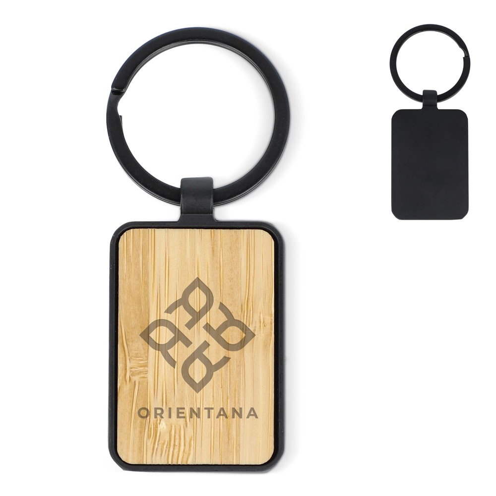 Bamboe en metalen sleutelhanger rechthoekig
