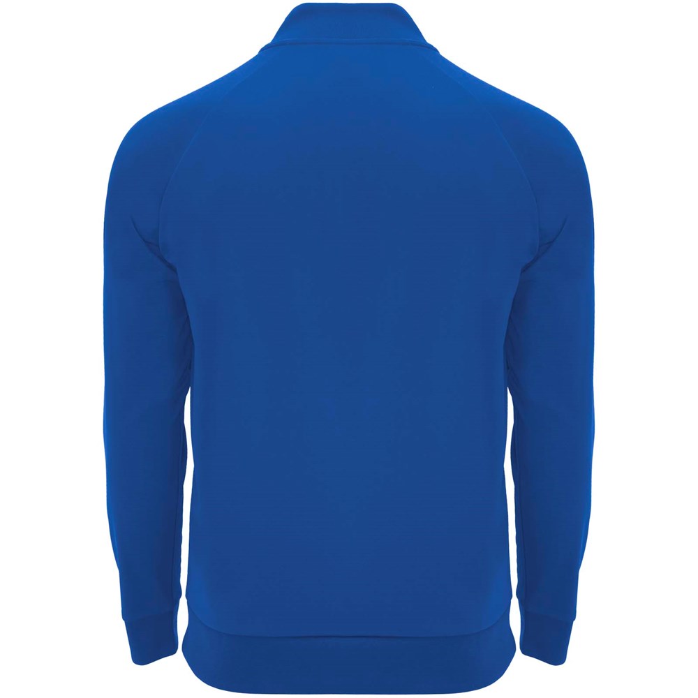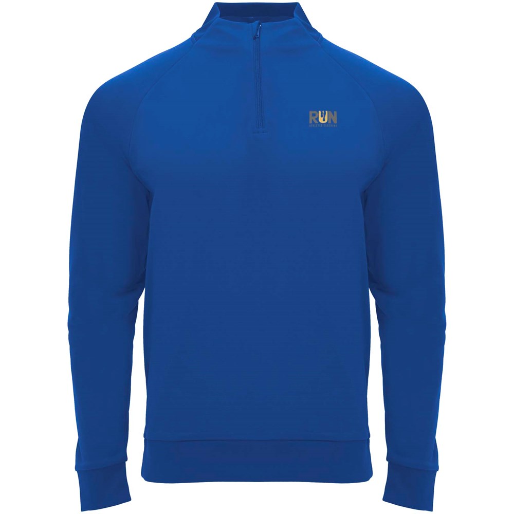 Technische stof. Raglanmouwen. Fleece aan de binnenkant. Kraag met halve rits en bijpassende verstevigde bedekte naden. 1x1 rib in kraag, manchetten en zoom. Verwijderbaar label. Sweatshirt passend bij Neapolis broek.