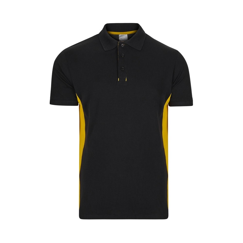 Tweekleurig piqué poloshirt (180g/m²), korte mouwen, van katoen (60%) en polyester (40%). Met knoopsluiting, geribde kraag en ondermouwen. Zijkanten, sluiting in contrasterende kleur. Maat: XS, S, M, L, XL, 2XL, 3XL