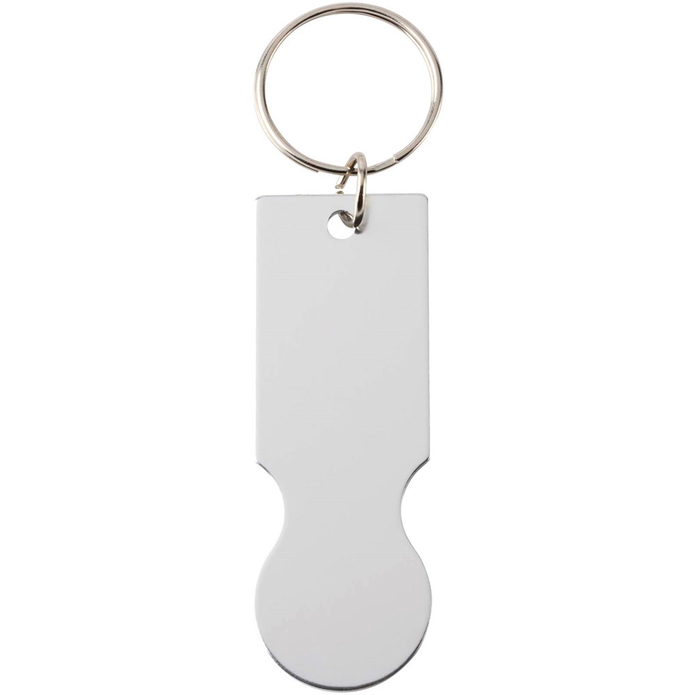 De Rhea metalen sleutelhanger met trolleymuntje is ontworpen om op de meeste supermarktkarretjes te passen, zodat je ze kunt ontgrendelen zonder munten of tokens.