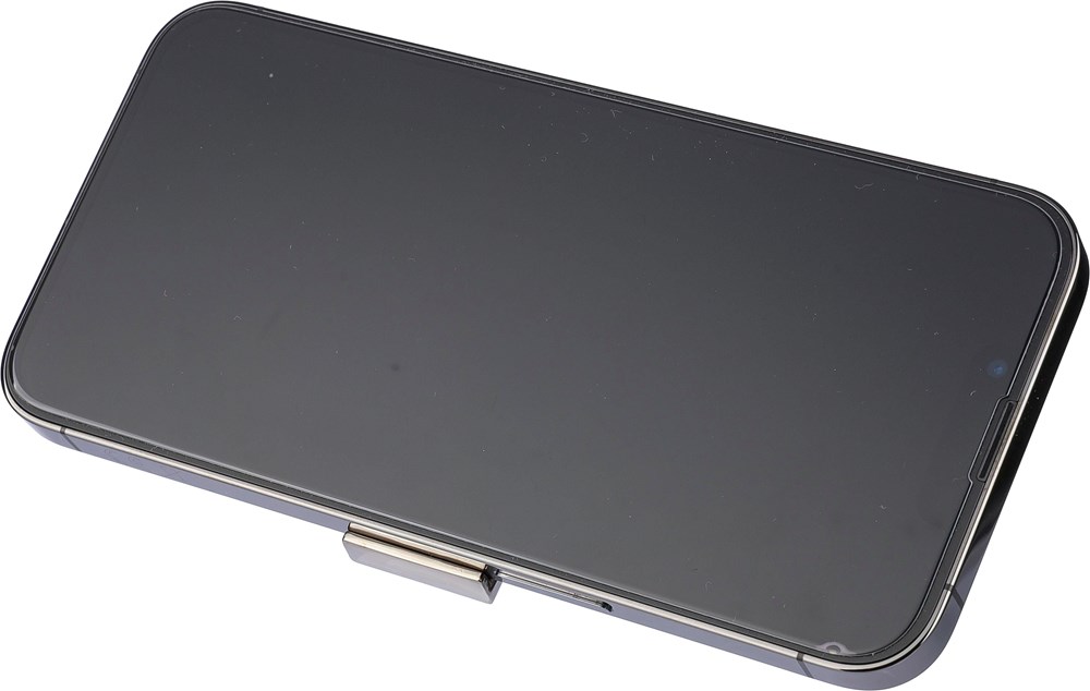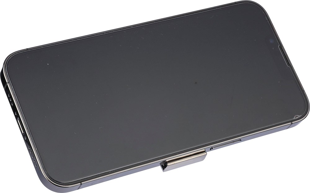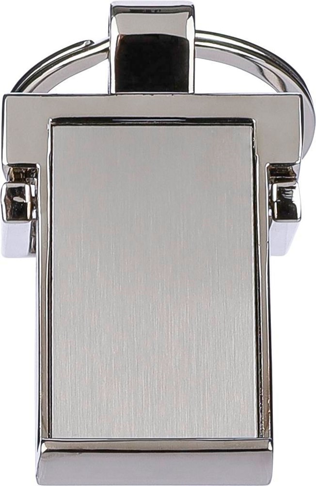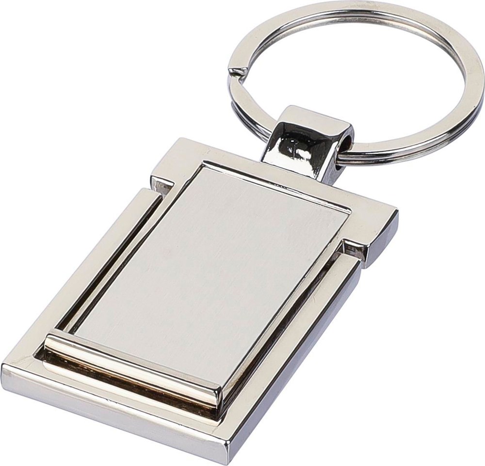 Zinklegering sleutelhanger met metalen ring. Sleutelhanger functioneert als telefoonhouder. Per...
