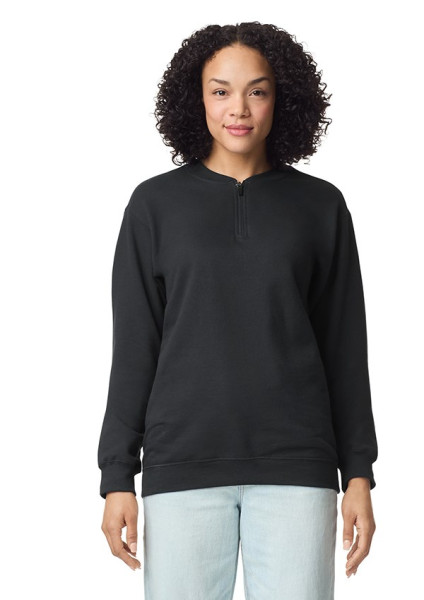 De Softstyle Midweight 1/4 zipsweater heeft een comfortabele, geborstelde binnenkant en een 100% ringgesponnen katoenen buitenkant. De 1x1 rib met spandex, varsity kraag, boorden en onderrand zorgen voor een verbeterde rek en vormherstel. Het klassieke, tubular design biedt een comfortabele pasvorm. Maak de look compleet met de bijpassende GILSF100 sweatpants.