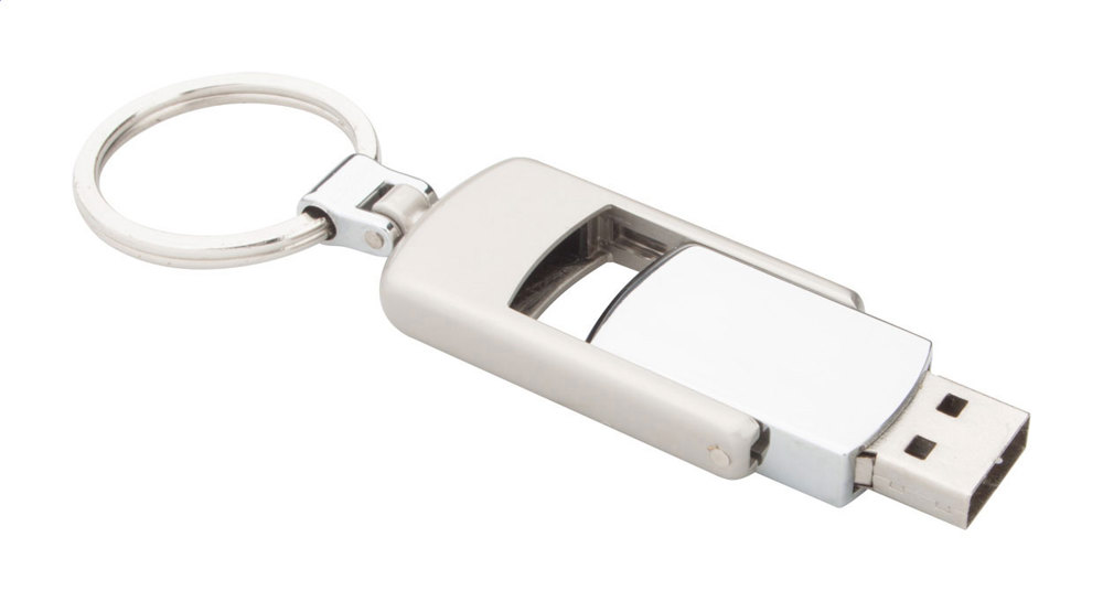 Opvouwbare metalen USB stick met sleutelhanger. Capaciteit 4/8/16/32 GB. USB 2.0.