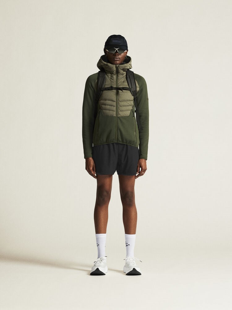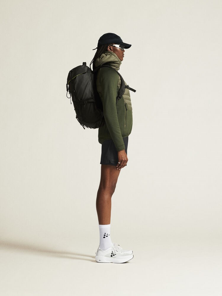 ADV Explore Light Down Hybrid Jacket is a warm and versatile hybrid jacket that works perfect as an outer layer in milder temperatures or as a mid-layer underneath a shell jacket in colder conditions. This insulation hybrid jacket combines lightweight 90/10 down insulation at upper body with brushed power fleece at sleeves, sides and lower body. The result is a versatile jacket that provides excellent warmth, efficient moisture transport, and optimal freedom of movement during intense physical activities in chilly conditions. The hybrid jacket also features slightly dropped back for enhanced protection and two side zip pockets for secure and convenient storage of keys, phone, energy bar, etc. • Water-repellent ripstop shell fabric made from recycled polyester at upper body and hood • Thin, lightweight down insulation 90/10 at upper body and hood • Brushed power fleece fabric at sleeves, sides and lower body • Slightly dropped back • Two side zip pockets • Regular fit