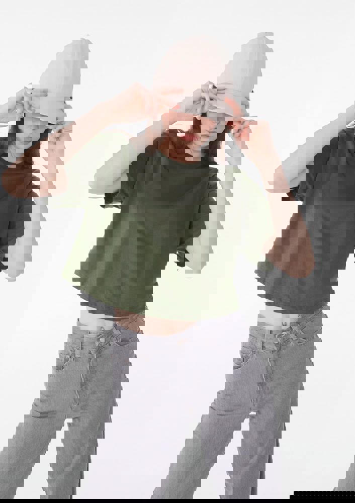 100% gekamd en ringgesponnen katoen. Dit cropped T-shirt in jersey in streetwearstijl is ideaal voor de zomer. Heel zacht en licht. Oversized mouwen. Ruime snit. De rug is iets langer. Dubbel stiksel aan hals, mouwuiteinden en onderkant.