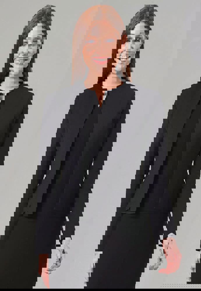 64% polyester / 34% viscose / 2% elasthan. LYCRA® elasthan. Getailleerde pasvorm, kraagloze styling met gebogen splitten, 2 interne jettzakken, gebogen voor- en achternaden. Hoge mate van vlekbestendigheid Teflon®. Martindale-slijtproef: bestand tegen 10.000 wrijvingen. Wasbaar in de machine op 40 °C of droogkuis.