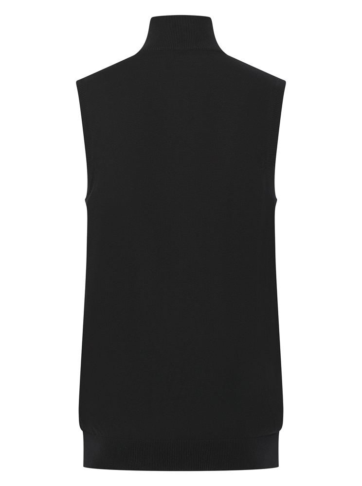 50% katoen / 50% acryl. Mouwloze herentrui met rits. Halve halslijn en zilverkleurige metalen ritssluiting. Geribde zoom, kraag en armsgat. 2 zijzakken met paspels.