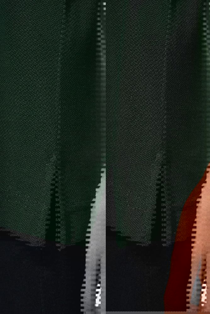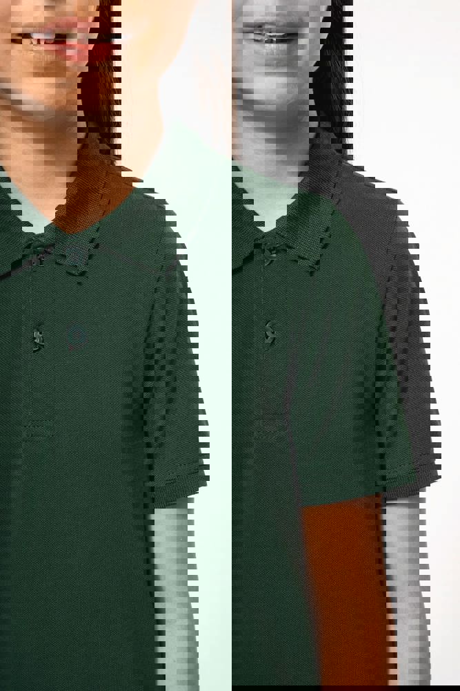 100% biologisch katoen. Gekamd katoen en piquétricot. Enzymgewassen. Rechte snit. 1x1 ribboord aan hals en mouwuiteinden. Knooplijst met twee bijpassende knopen. Bijpassende nektape in de hoofdstof in de kraag. Verstevigde schouders. Zijsplitten. Boord onderaan afgewerkt met dubbel stiksel. Geen merklabel, enkel een afscheurbaar maatlabel voor eenvoudige personalisatie.