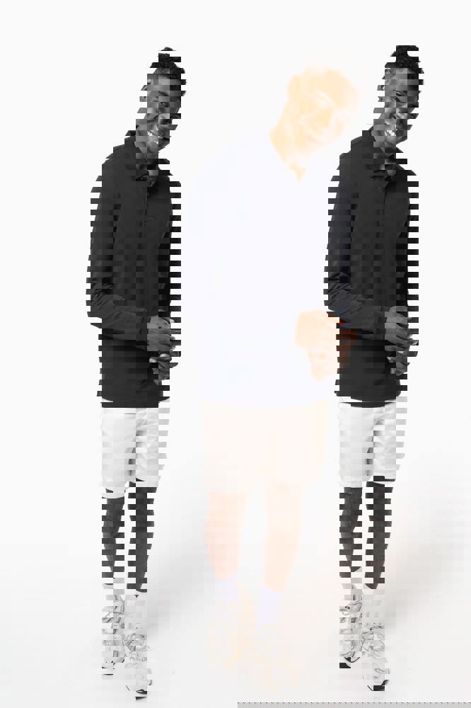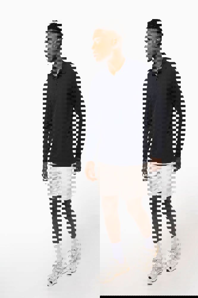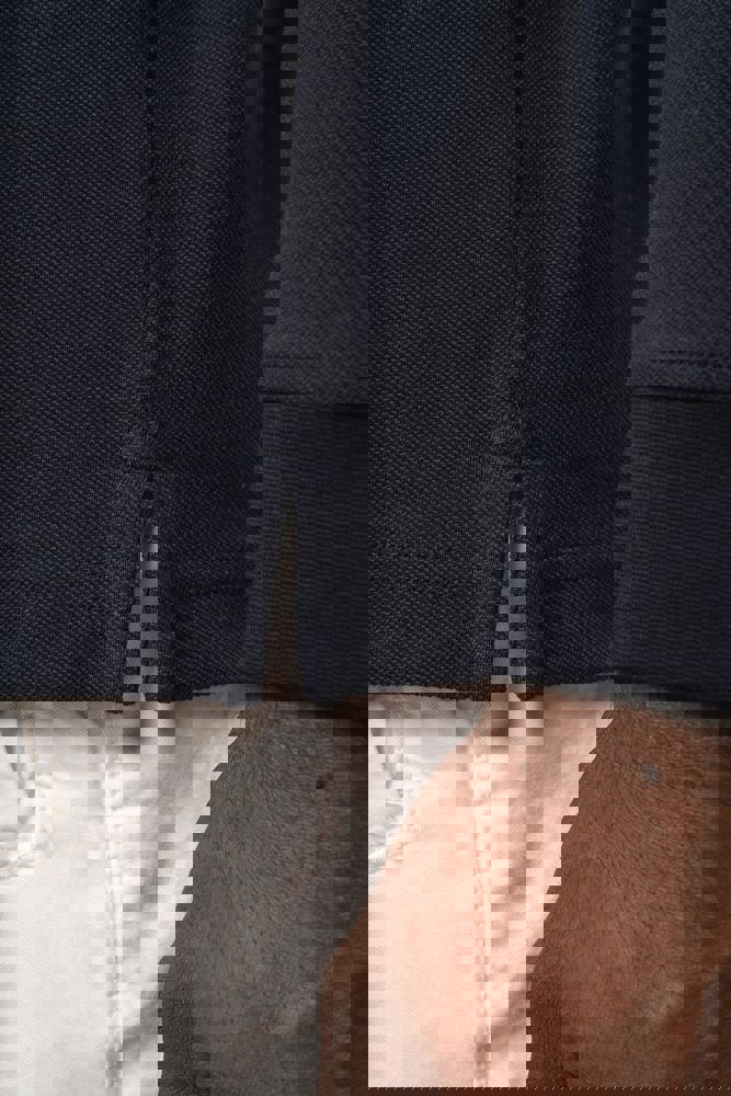 100% biologisch katoen. Gekamd katoen. Piquétricot. Rechte snit. Enzymgewassen. Zijnaden. 1x1 ribboord aan hals en mouwuiteinden. Knooplijst met twee bijpassende knopen. Bijpassende nektape in de hoofdstof in de kraag. Verstevigde schouders. Zijsplitten. Boord onderaan afgewerkt met dubbel stiksel. Geen merklabel, enkel een afscheurbaar maatlabel voor eenvoudige personalisatie.