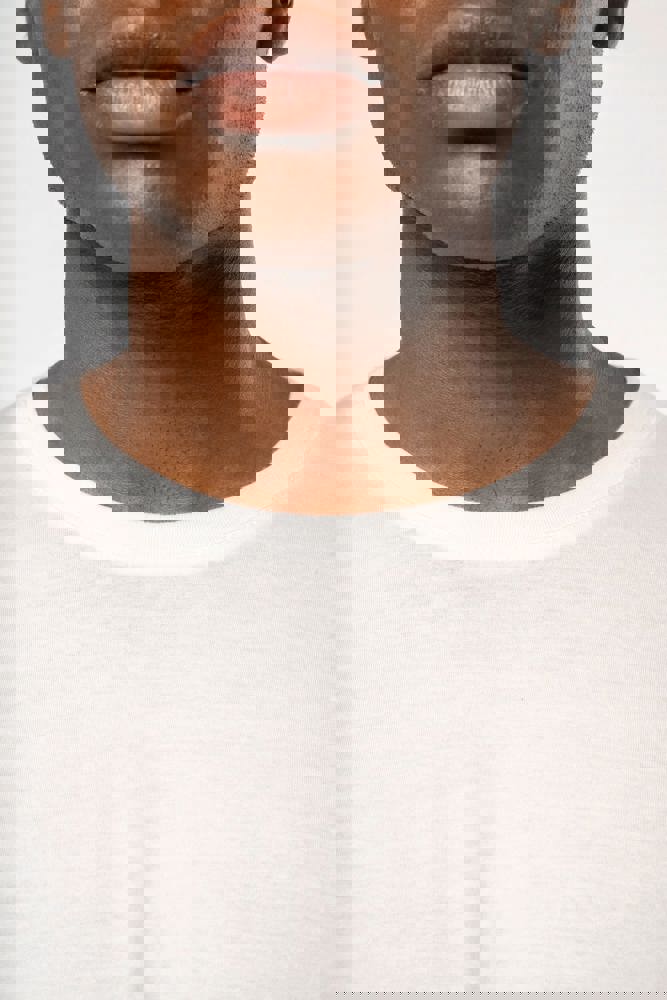 Effen kleuren : 100% katoen. Kleur Ash Heather : 98% katoen / 2% viscose. Kleur Oxford Grey : 90% katoen / 10% viscose. Kleuren Wine Heather ; French Navy Heather ; Green Marble Heather ; Cloudy Blue Heather : 80% katoen / 20% polyester. En kleur Grey Heather : 70% katoen / 30% polyester. Alle kleuren zijn gemaakt van biologisch katoen in omschakeling. Gekamd katoen. Ronde hals in ribboord met elasthan. Toon-op-toon nektape. Buisvormig. Dubbel stiksel aan mouwuiteinden en onderkant.