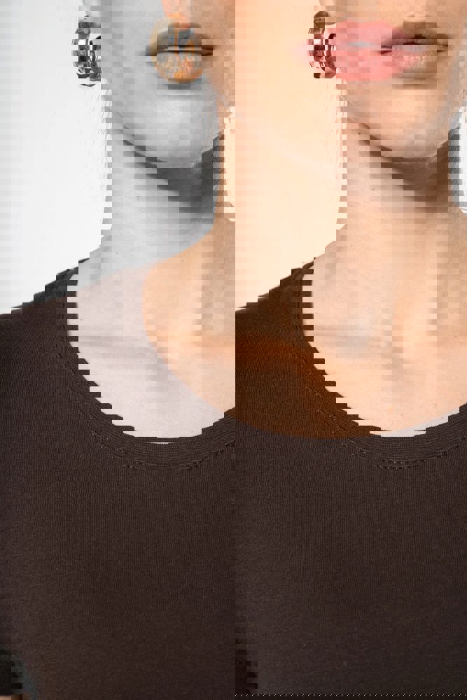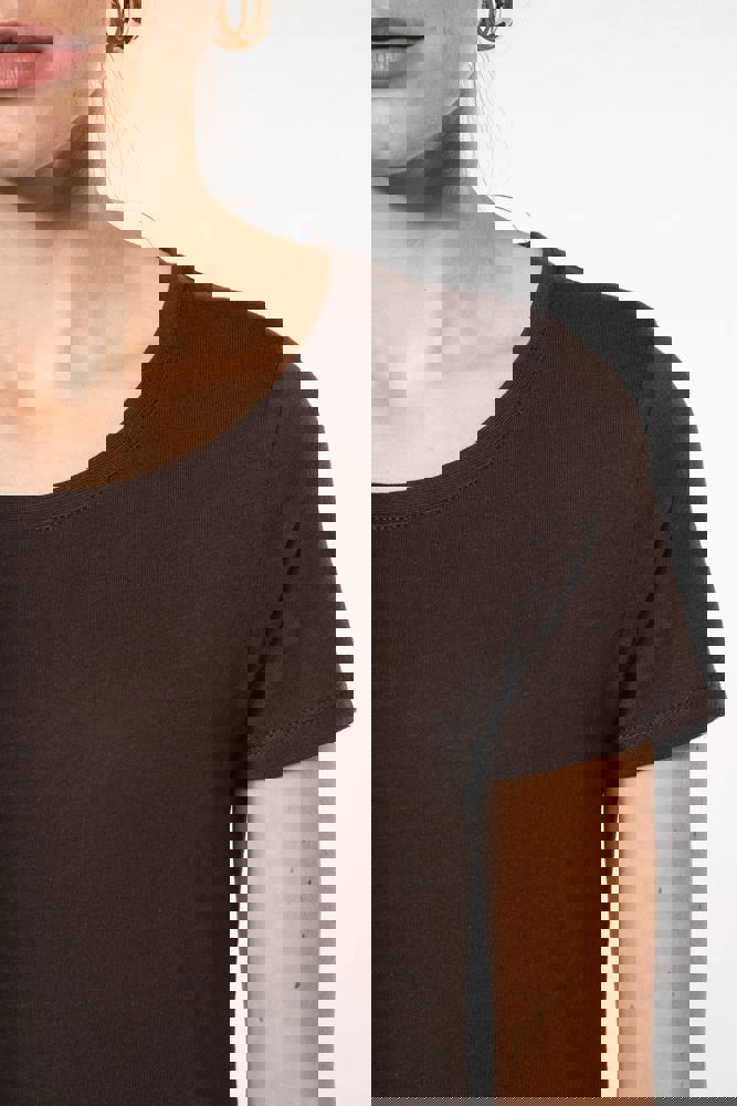 Effen kleuren : 100% katoen. Kleur Ash Heather 98% katoen / 2% viscose en Oxford Grey : 90% katoen / 10% viscose. Alle kleuren zijn gemaakt van biologisch katoen in omschakeling. Gekamd katoen. Ronde hals in ribboord met elasthan. Toon-op-toon nektape. Dubbel stiksel aan mouwuiteinden en onderkant.