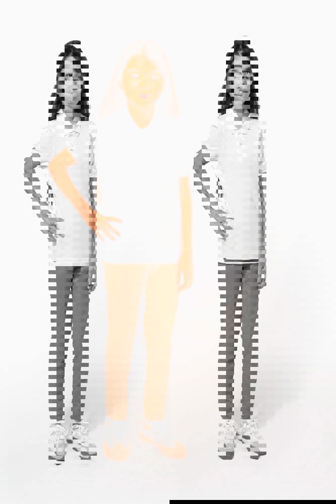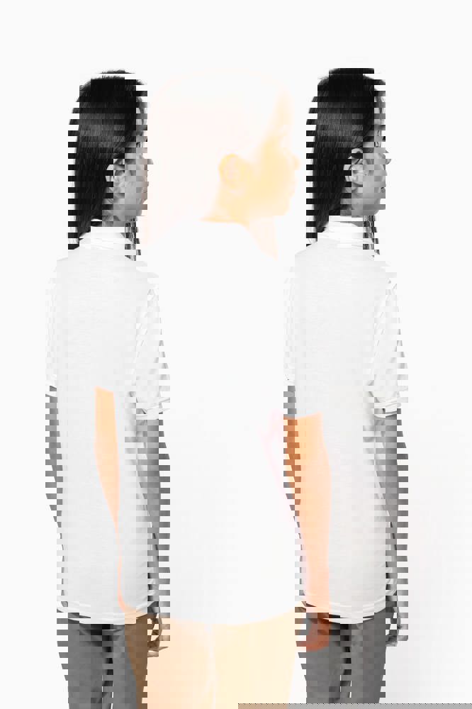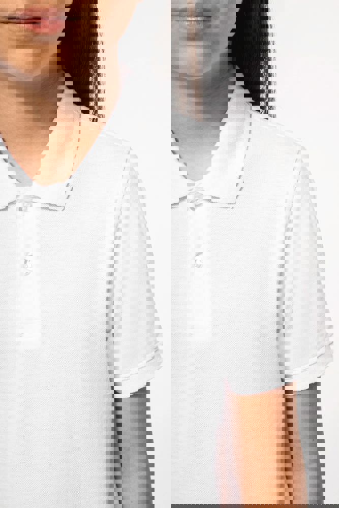 100% katoen. Gekamd katoen. Rechte snit. Piquétricot. Gemaakt in Portugal. 1x1 ribboord aan hals en mouwuiteinden. Knooplijst met twee contrasterende parelmoeren knopen op alle kleuren. Bijpassende nektape in de hoofdstof in de kraag. Verstevigde schouders. Zijsplitten. Boord onderaan afgewerkt met dubbel stiksel. Geen merklabel, enkel een afscheurbaar maatlabel voor eenvoudige personalisatie.