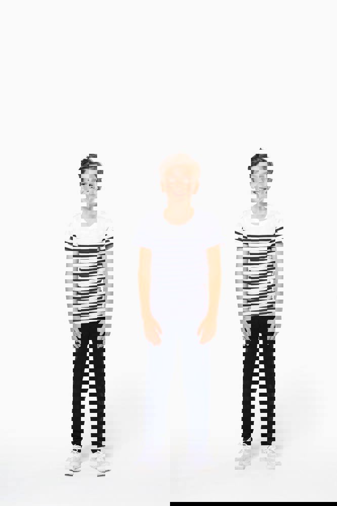 100% katoen. Dit T-shirt werd gemaakt van 100% biologisch gekamd katoen. Rechte snit. Enzymgewassen. Ronde halsopening met 1x1 ribboord. Gebreide strepen. Nektape. Dubbel stiksel aan mouwuiteinden en onderkant. Geen merklabel, voor eenvoudige personalisatie.