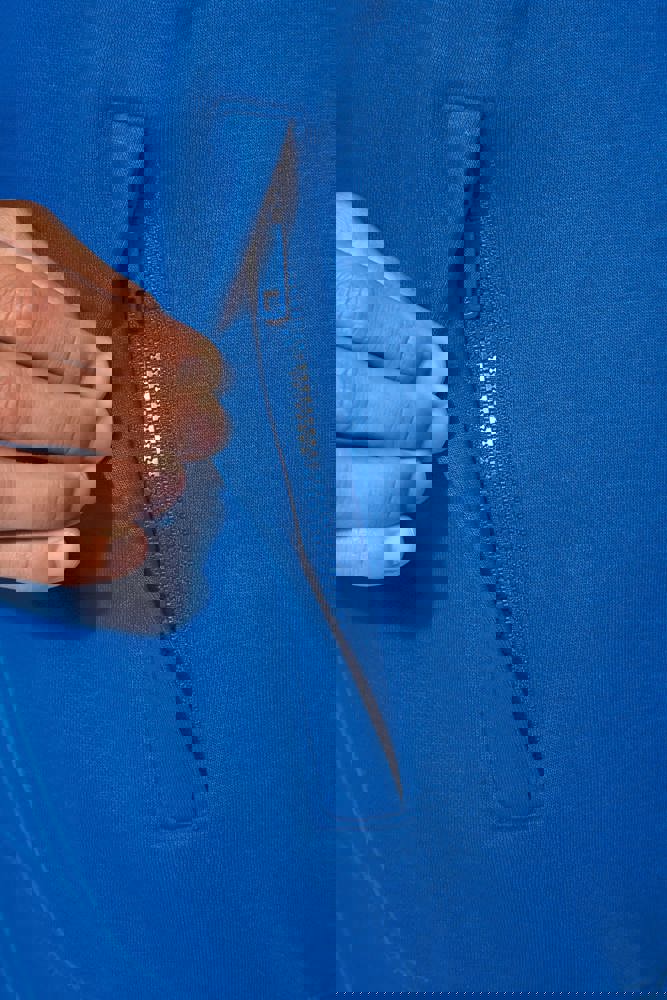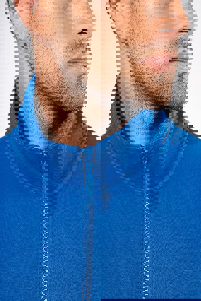 80% katoen / 20% polyester. Buitenoppervlak 100% katoen. LSF-behandeling (Low Shrinkage Fleece: voorgekrompen fleece). Aan de binnenkant geborsteld fleece 3 draden van gekamd katoen. Rechte snit. Rechte mouwen. Opstaande kraag. Ritssluiting in toon op toon plastic. 2 ritszakken en biesjes opzij. Halvemaanvormige afwerking aan de halsopening op de achterkant, voor eenvoudige personalisatie van het merk aan de binnenkant van de kraag. Afwerking van 1x1 ribboord aan de mouwuiteinden en onderaan. Tear-away merklabel.