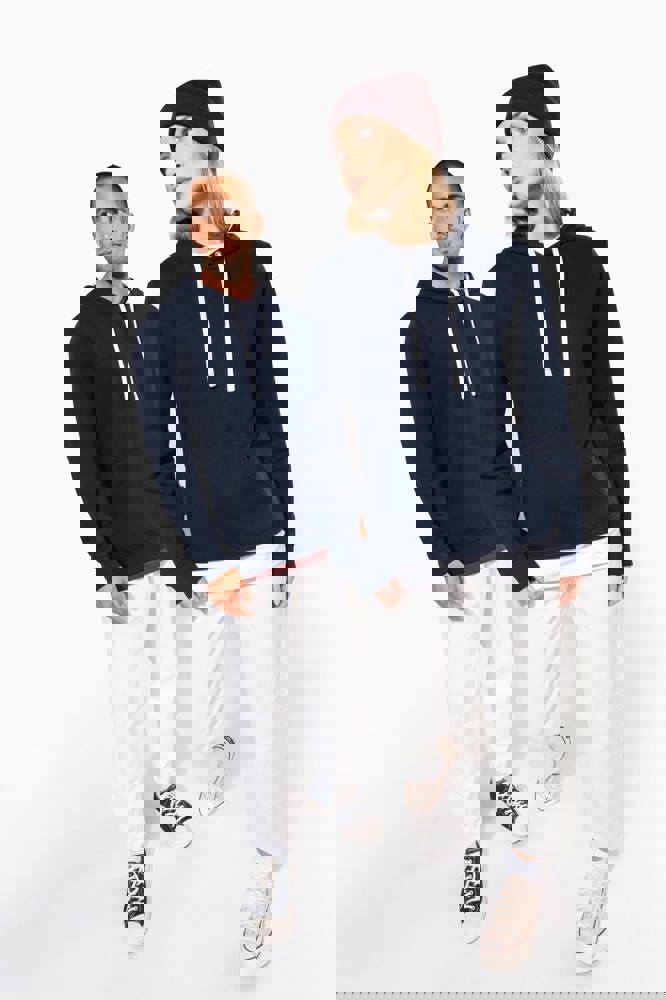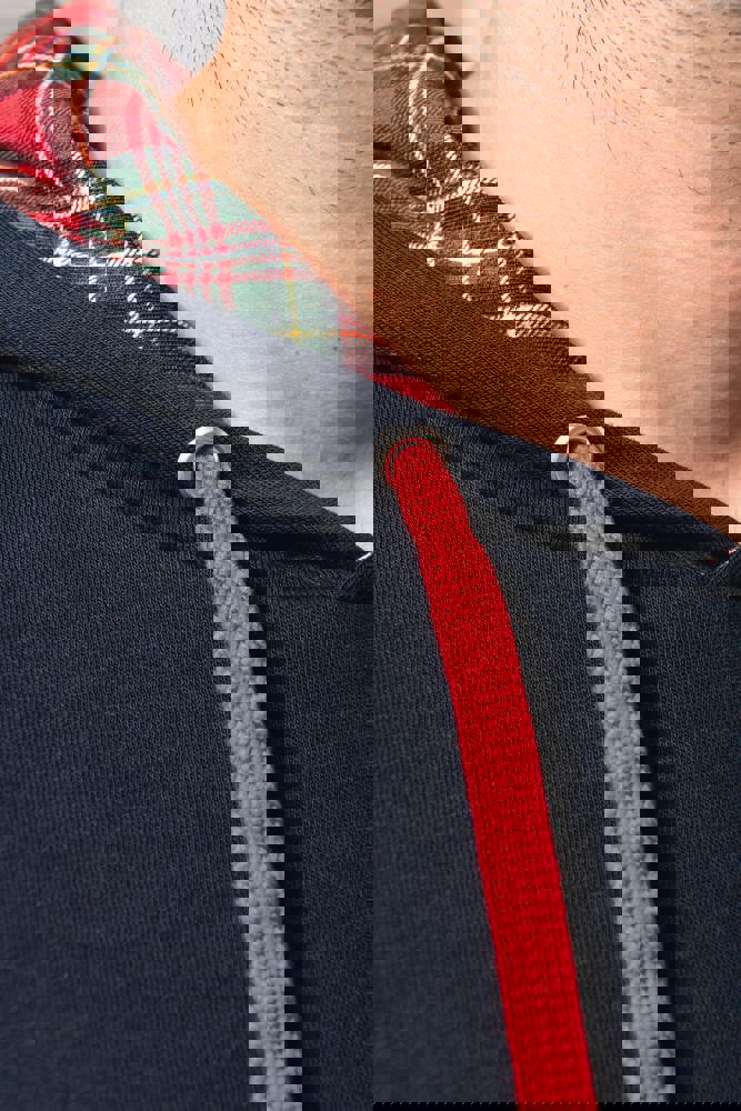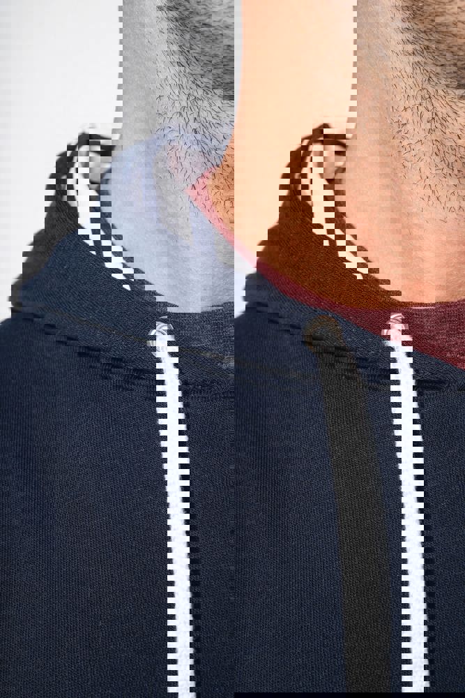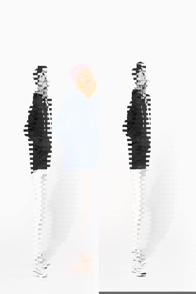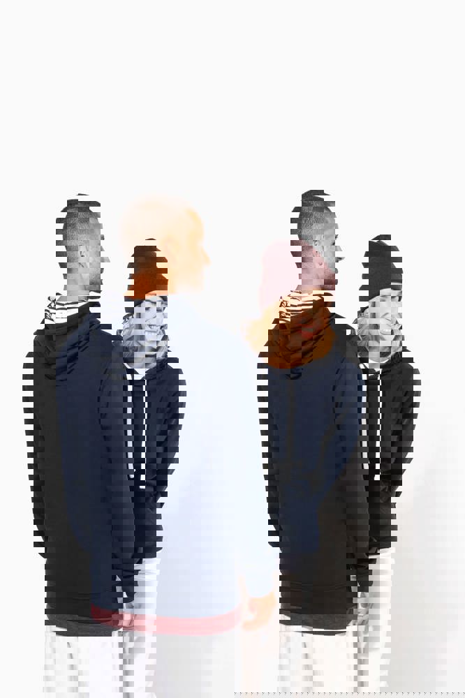 80% katoen / 20% polyester. Gekamd katoen. Aan de binnenkant geborsteld fleece 3 draden. Rechte snit. Rechte mouwen. Kangoeroezakken. Halvemaanvormige halsopening voor eenvoudige personalisatie van het merk aan de binnenkant van de kraag. Afwerkingen van 1x1 ribboord aan de mouwuiteinden en de boord. Gevoerde capuchon met een themastof in bedrukt jerseykatoen en contrasterende aanrijgkoordjes. Tear-away merklabel.