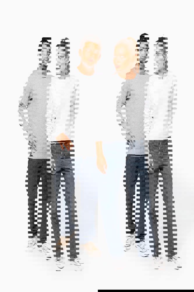 80% katoen / 20% polyester. Geborsteld 3 draden LSF-fleece (Low Shrinkage Fleece), behandeld tegen pluizen. Gemaakt in Portugal. Straight snit. Ronde hals. Cut-and-sew-techniek.1x1 buisvormige zoom voor betere afwerking van kraag, manchetten en kledingstuk. Halvemaanvormige afwerking aan de binnenkant van de kraag. Dubbel stiksel aan de mouwuiteinden en de onderkant. Geen merklabel, maar een maatlabel in de kraag voor eenvoudige personalisatie.