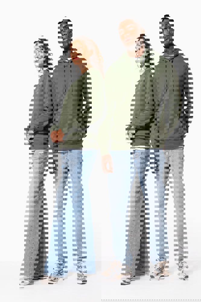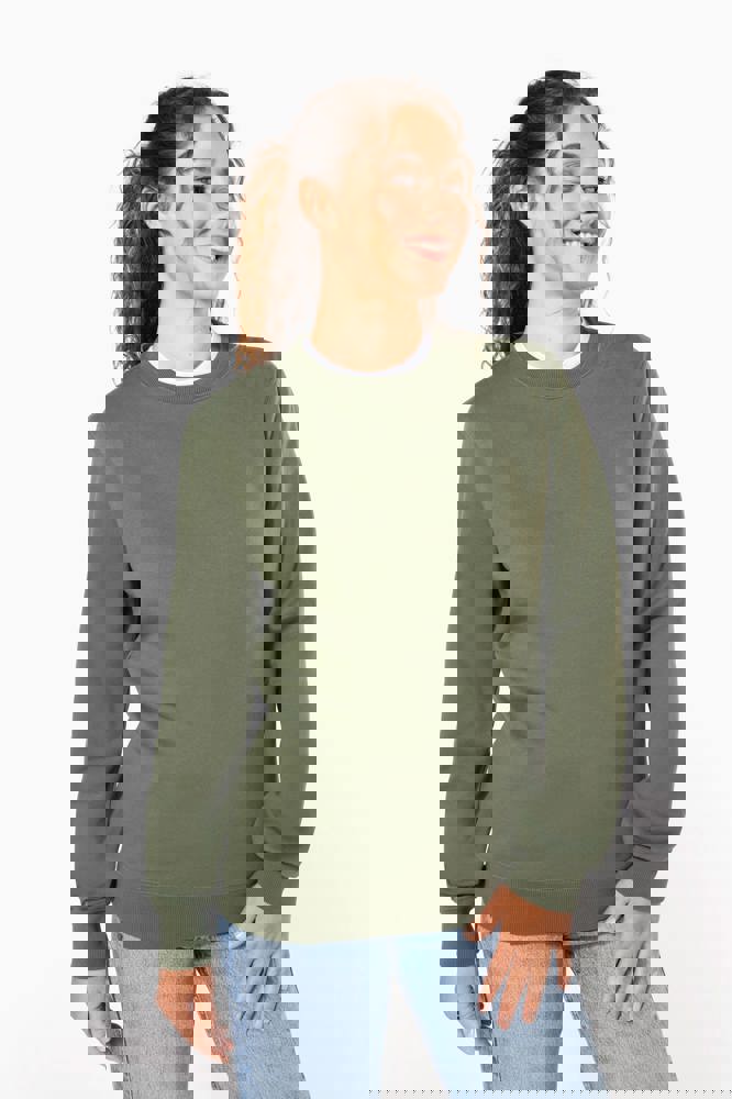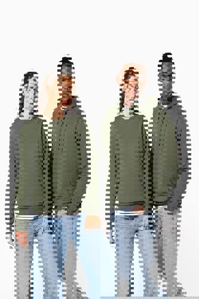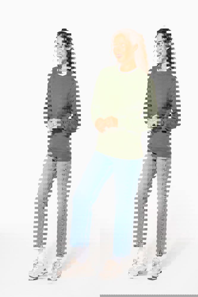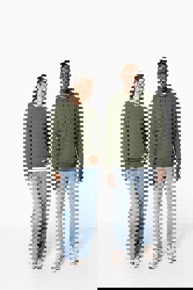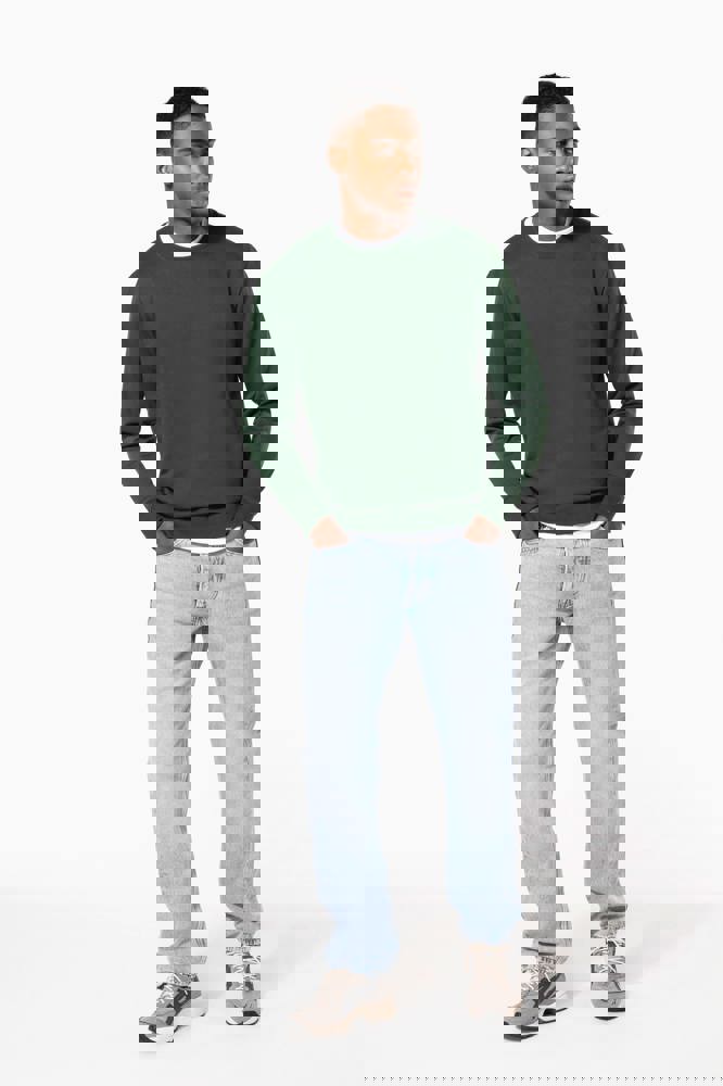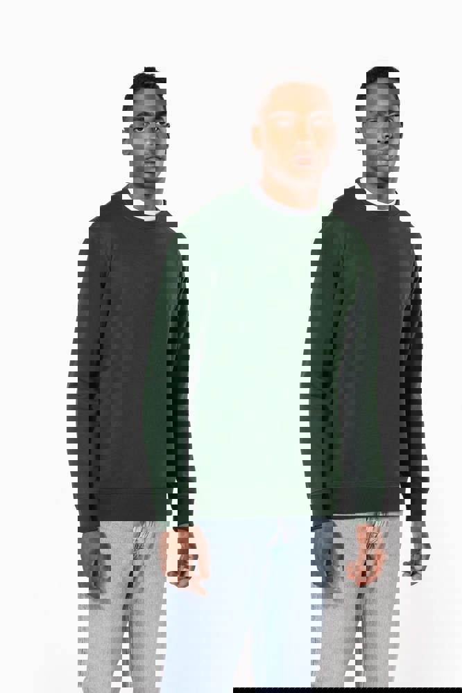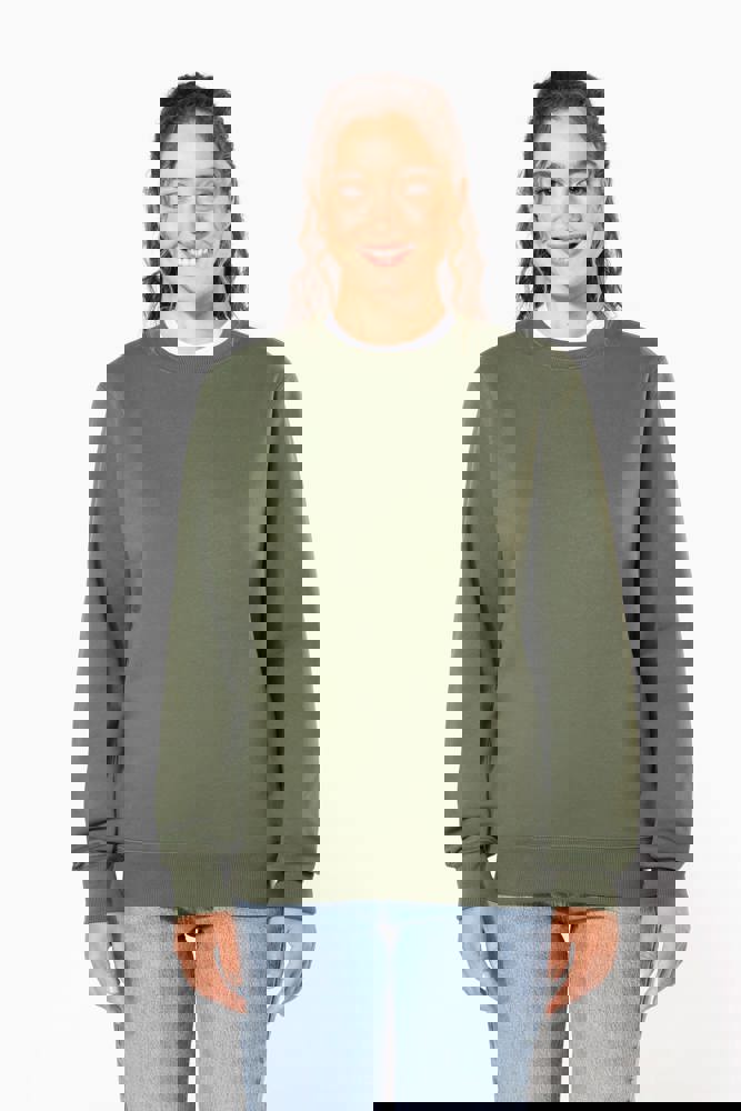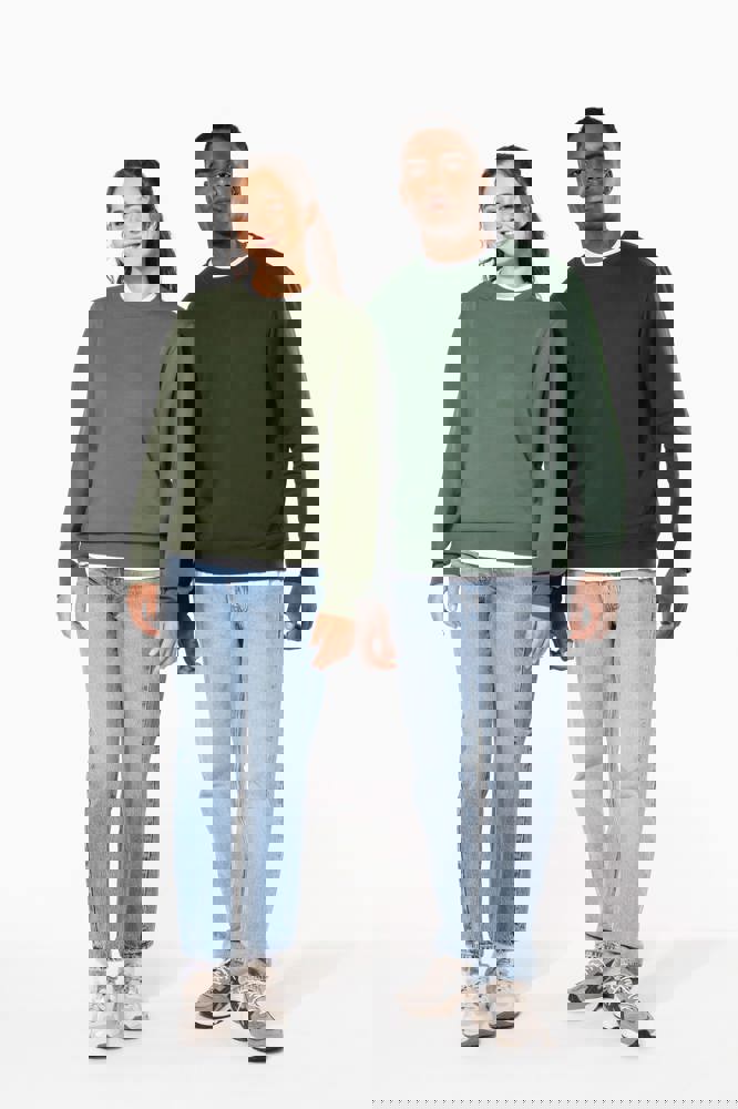 50% ringgesponnen katoen / 50% gerecycled polyester post-consumer. Geborsteld fleece aan de binnenkant. Straight snit. Cut-and-sew-techniek. 2x1 ribboord in buisconstructie voor een betere afwerking aan de hals, de mouwuiteinden en de onderkant. Toon-op-toon nektape in jersey in de kraag. Geen merklabel in de kraag, maar enkel een maatlabel voor eenvoudige personalisatie.