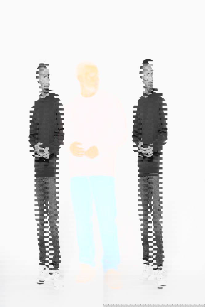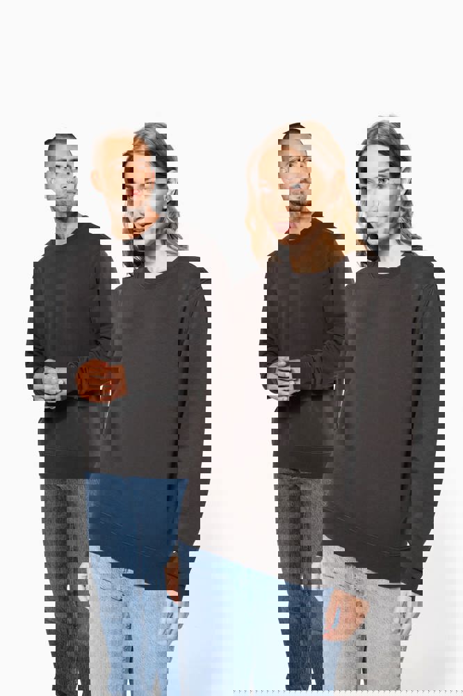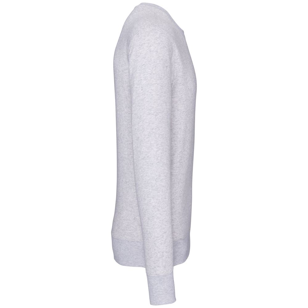 85% katoen / 15% polyester. Gemaakt van 85% biologisch katoen en 15% gerecycled polyester post-consumer. Buitenoppervlak 100% katoen. Geborsteld fleece 3 draden LSF (Low Shrinkage Fleece) aan de binnenkant. Gekamd katoen. Enzymgewassen. Rechte snit. 1x1 ribboord in buisconstructie voor een betere afwerking aan de hals, de mouwuiteinden en de onderkant. Nektape in toon-op-toon jersey en halvemaanvormige afwerking aan de binnenkant van de kraag. Afwerking met dubbel stiksel aan hals, mouwuiteinden en onderkant. Geen merklabel in de kraag, maar enkel een maatlabel voor eenvoudige personalisatie.