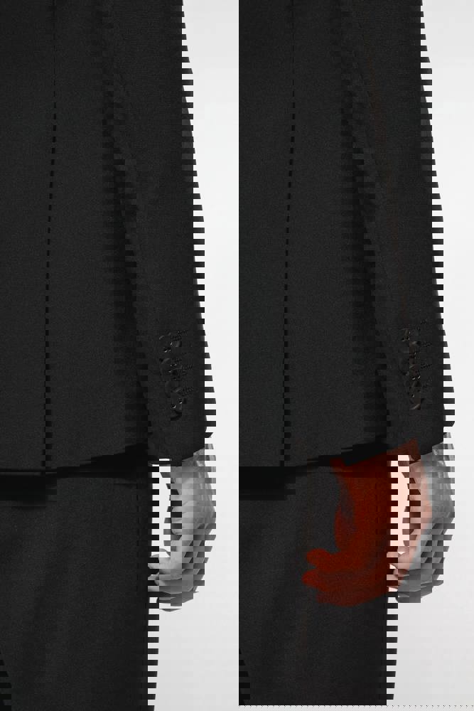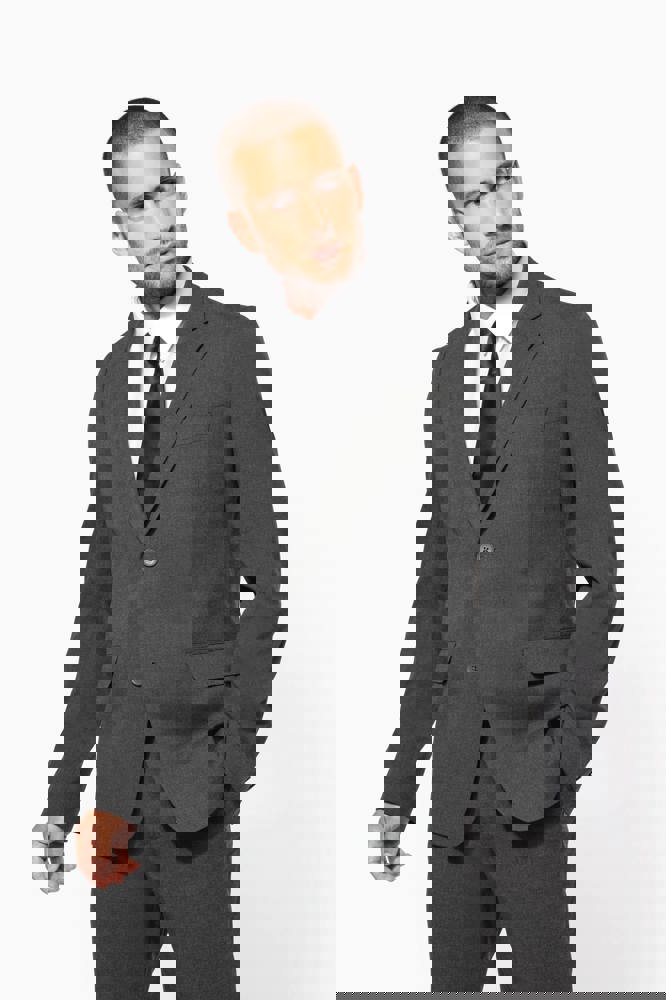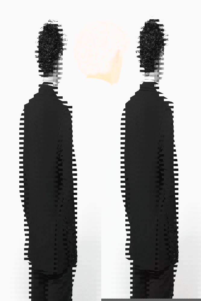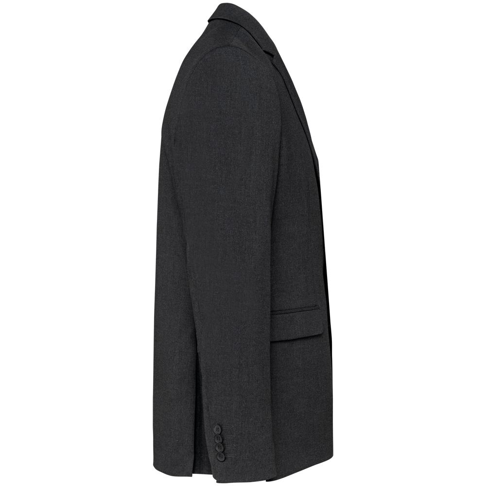 64% polyester / 34% viscose / 2% elasthan. Voering 100% tafpolyester. Jas met 2 knopen. 2 omzoomde zakken met klep aan de voorkant. 1 borstzakje. 2 binnenzakken met knoop en 1 gsm-zak. Mouwuiteinde met 4 knopen. 2 ruimtesplitten op de achterkant. 1 verborgen drukkersrits aan de linkerkant vooraan.