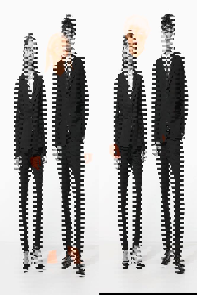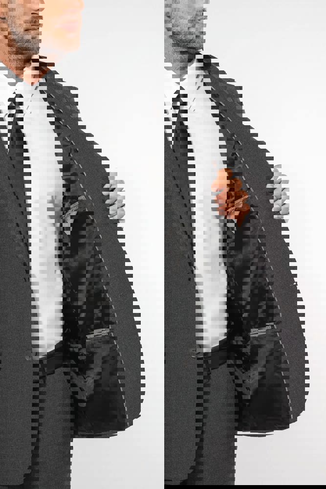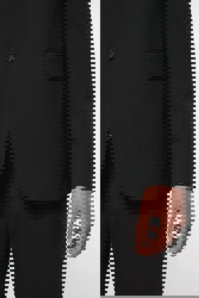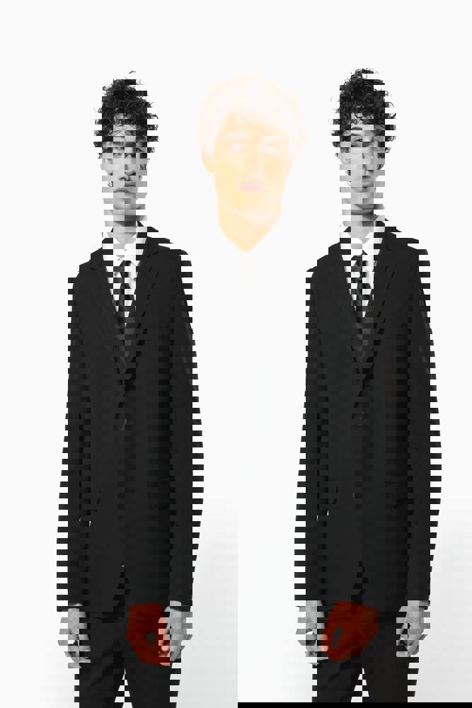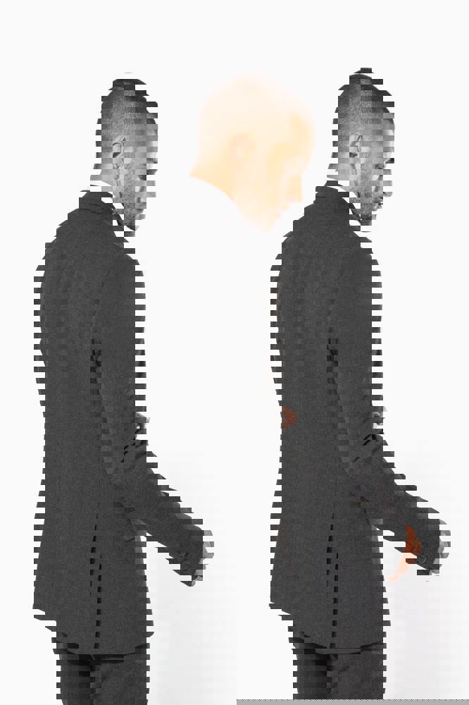 64% polyester / 34% viscose / 2% elasthan. Voering 100% tafpolyester. Jas met 2 knopen. 2 omzoomde zakken met klep aan de voorkant. 1 borstzakje. 2 binnenzakken met knoop en 1 gsm-zak. Mouwuiteinde met 4 knopen. 2 ruimtesplitten op de achterkant. 1 verborgen drukkersrits aan de linkerkant vooraan.