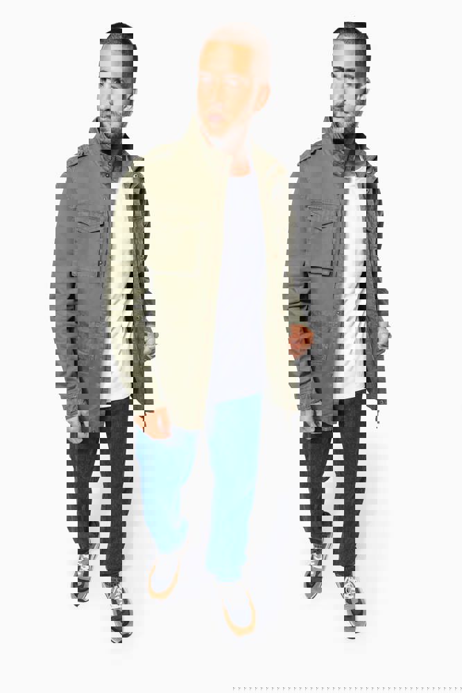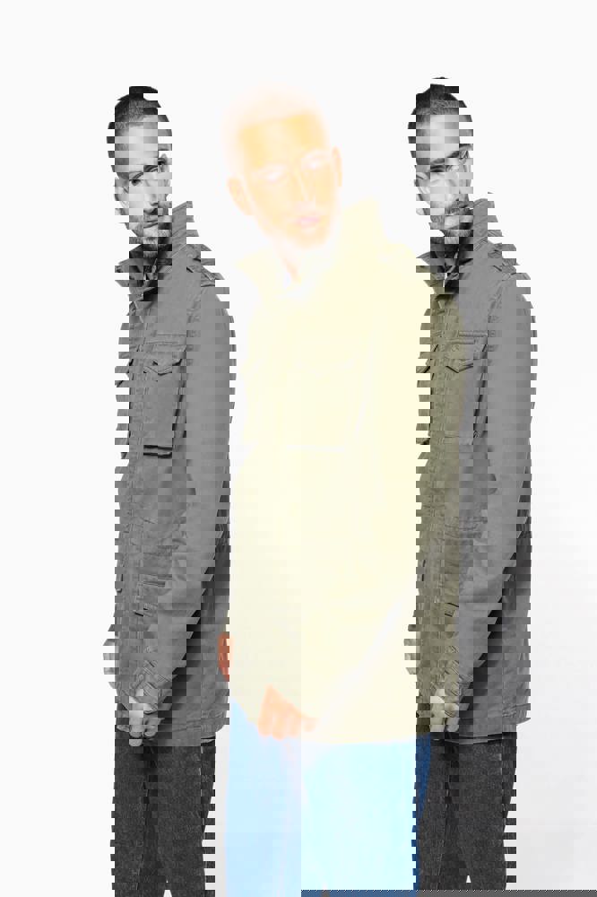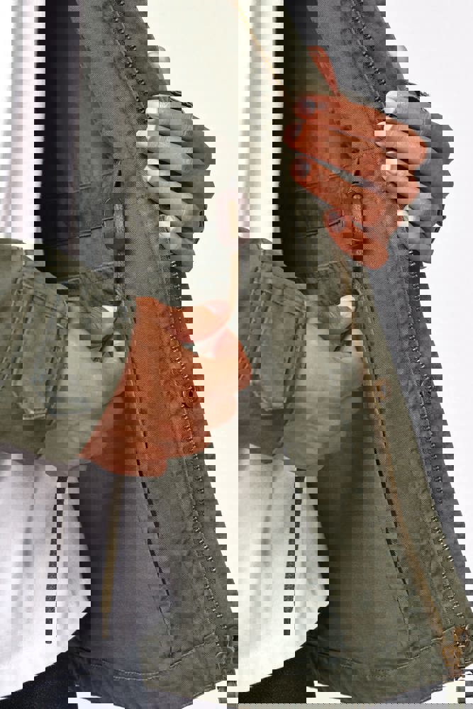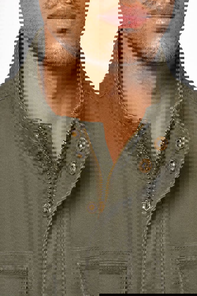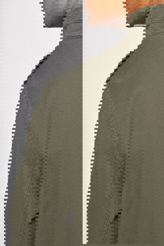 100% katoen. Twillconstructie. Regular fit. Gewassen kledingstuk. Deze techniek maakt dat er kleurverschillen kunnen zijn tussen de producten en elk stuk dus uniek is. Ritssluiting met een metalen schuiver en trekker in de hoofdstof, en een knooplijst met onzichtbare drukknopen in het midden vooraan. Binnenin afgewerkt met een oplegsel. Vier buitenzakken met een drukknoop. Pols met een sierlijst, samengehouden met een drukknoop. Verstelbare aanrijgkoordjes in de tailleband, met stopper met lederlook in het kledingstuk. Schouderlijst met knoop. Binnenzak met klittenband. Halve maan voor eenvoudige personalisatie en ophanglus binnenin.