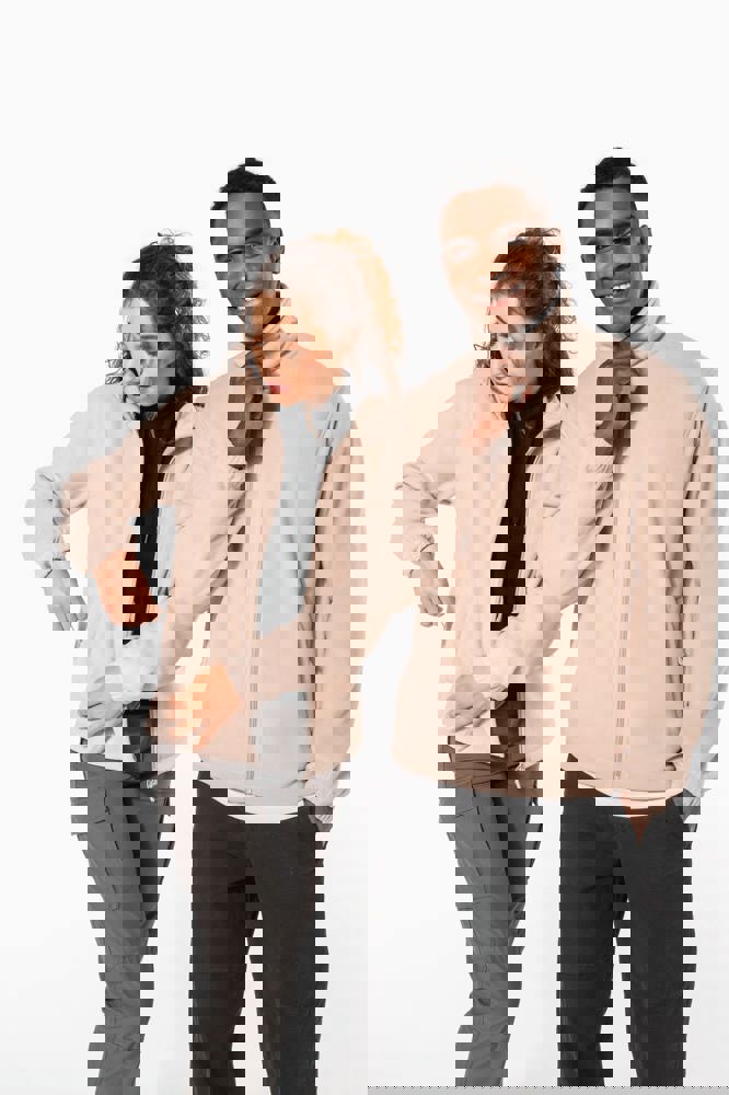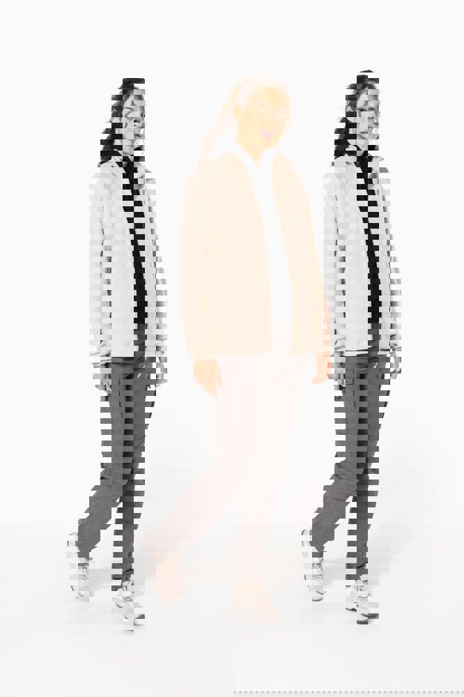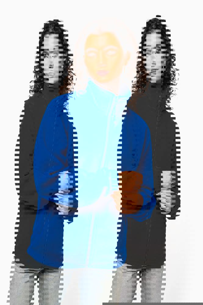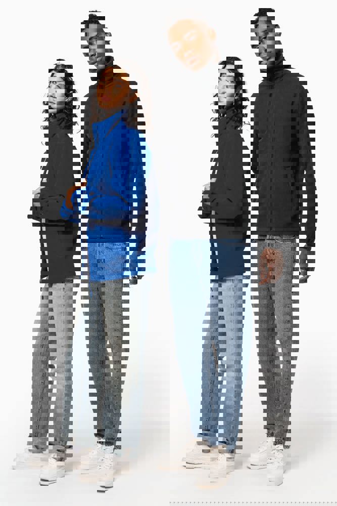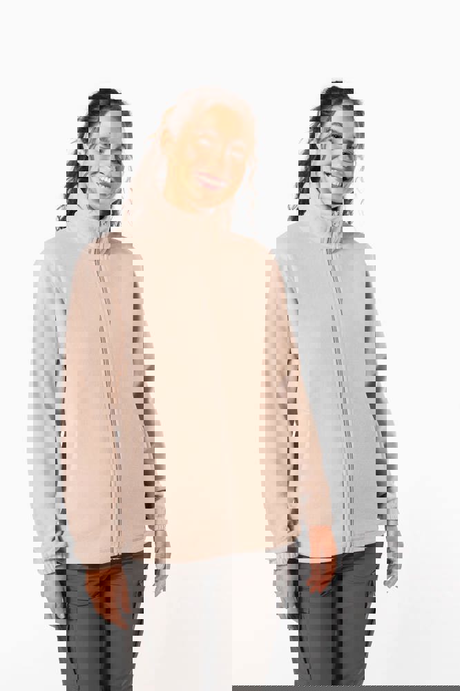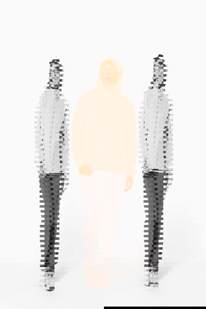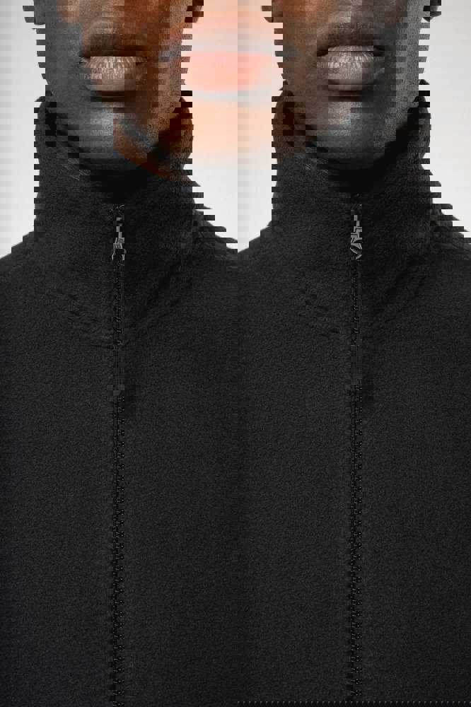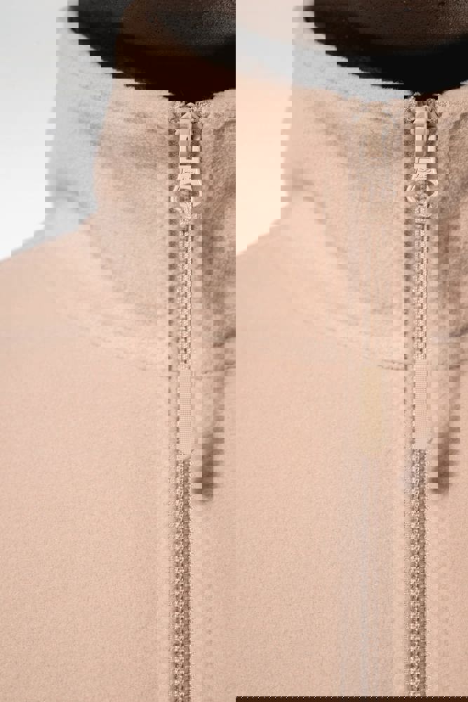 100% microfleece polyester met antipluisbehandeling. 2 omzoomde ritszakken opzij. Ritssluiting. Elastische mouwuiteinden. Boord verstelbaar met elastische aanrijgkoordjes (de elastiek zit aan de binnenkant vast om hem te verbergen).