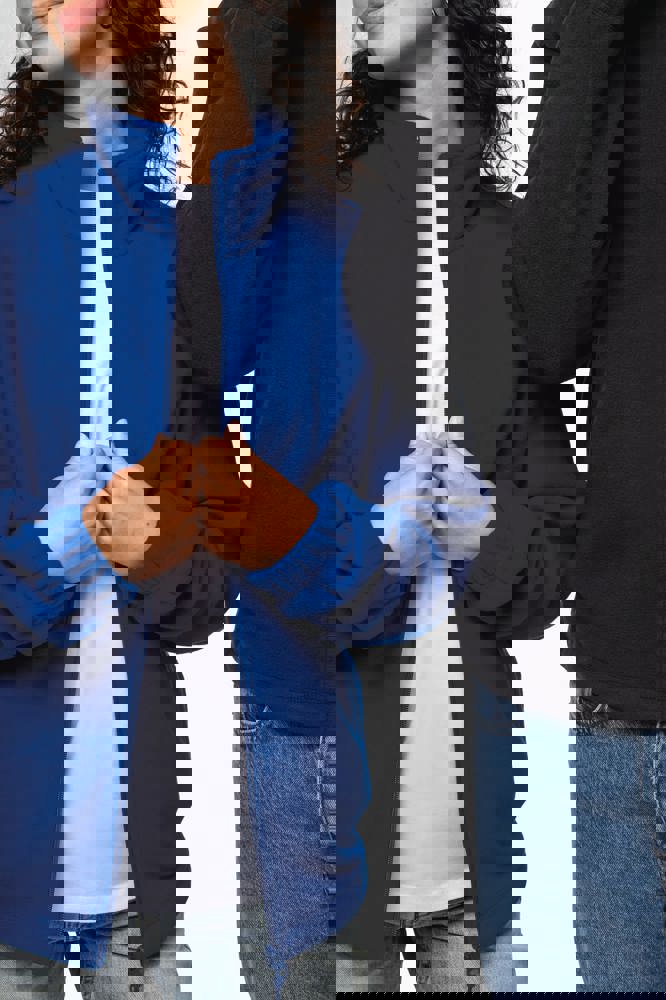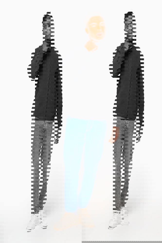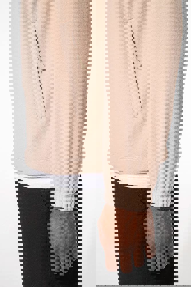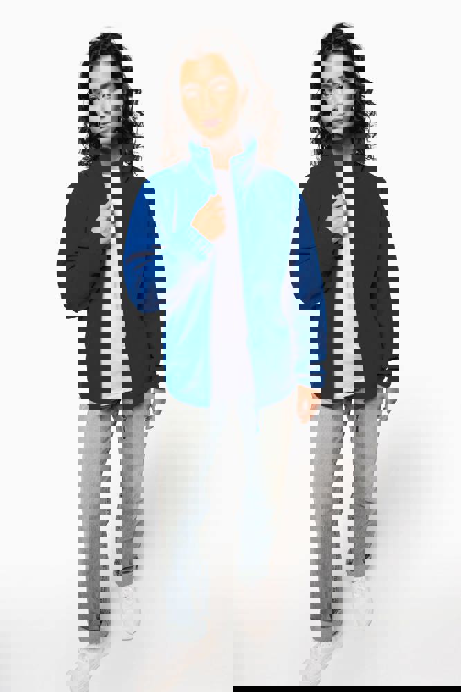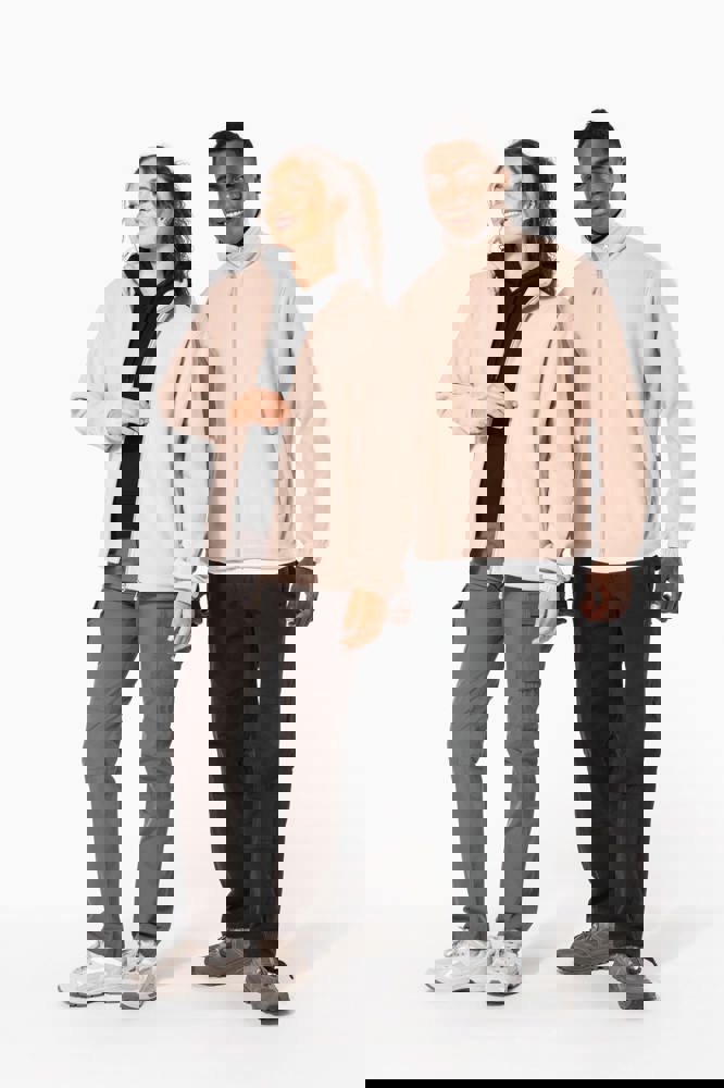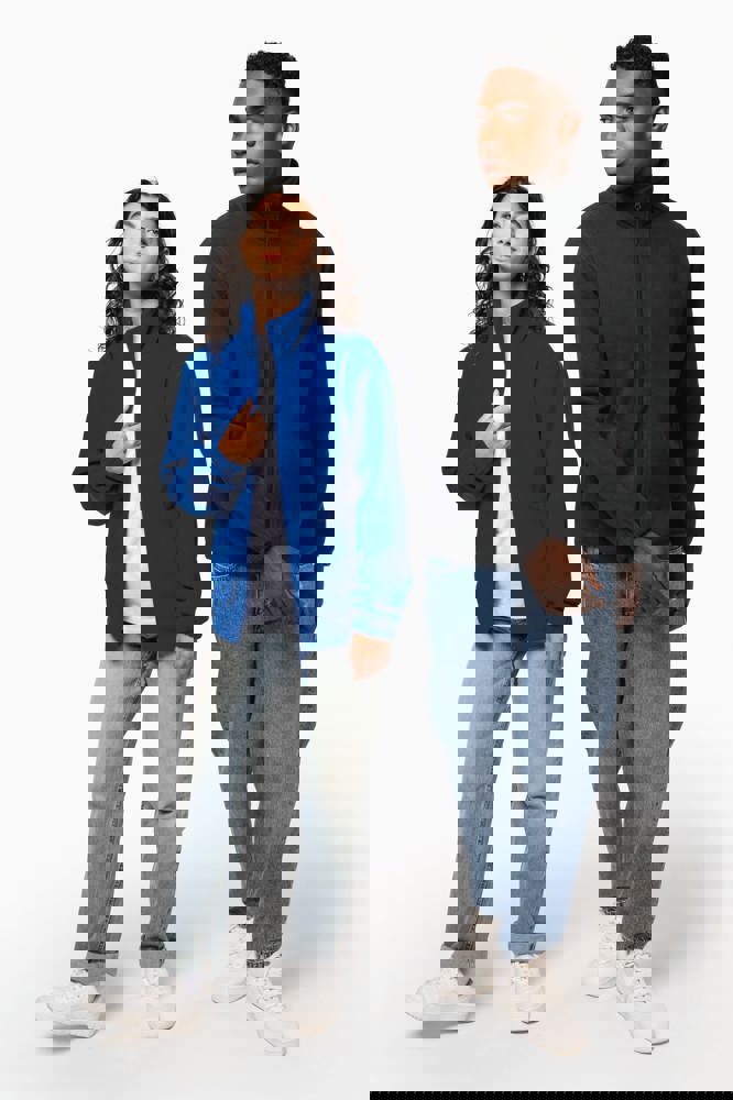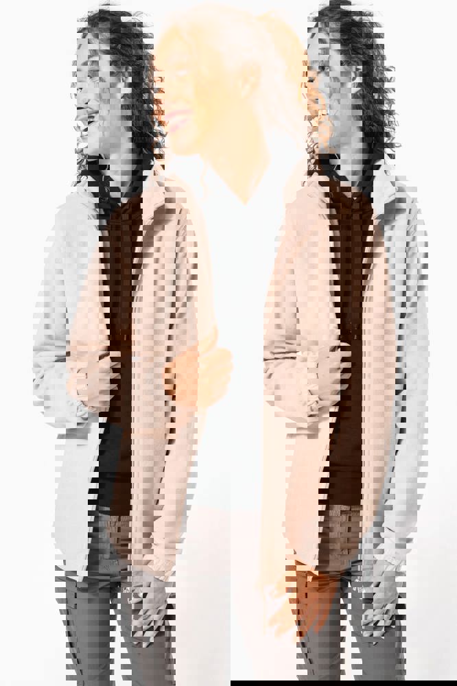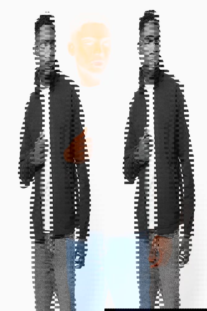 100% microfleece polyester met antipluisbehandeling. 2 omzoomde ritszakken opzij. Ritssluiting. Elastische mouwuiteinden. Boord verstelbaar met elastische aanrijgkoordjes (de elastiek zit aan de binnenkant vast om hem te verbergen).