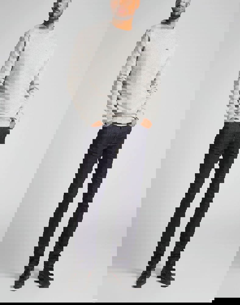 100% jerseykatoen. Regular snit. Ribkraag met een vintage V-inzetsel. Geborduurd retro Lee® logo.