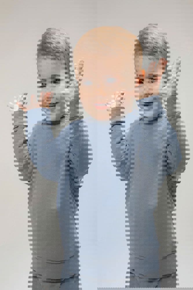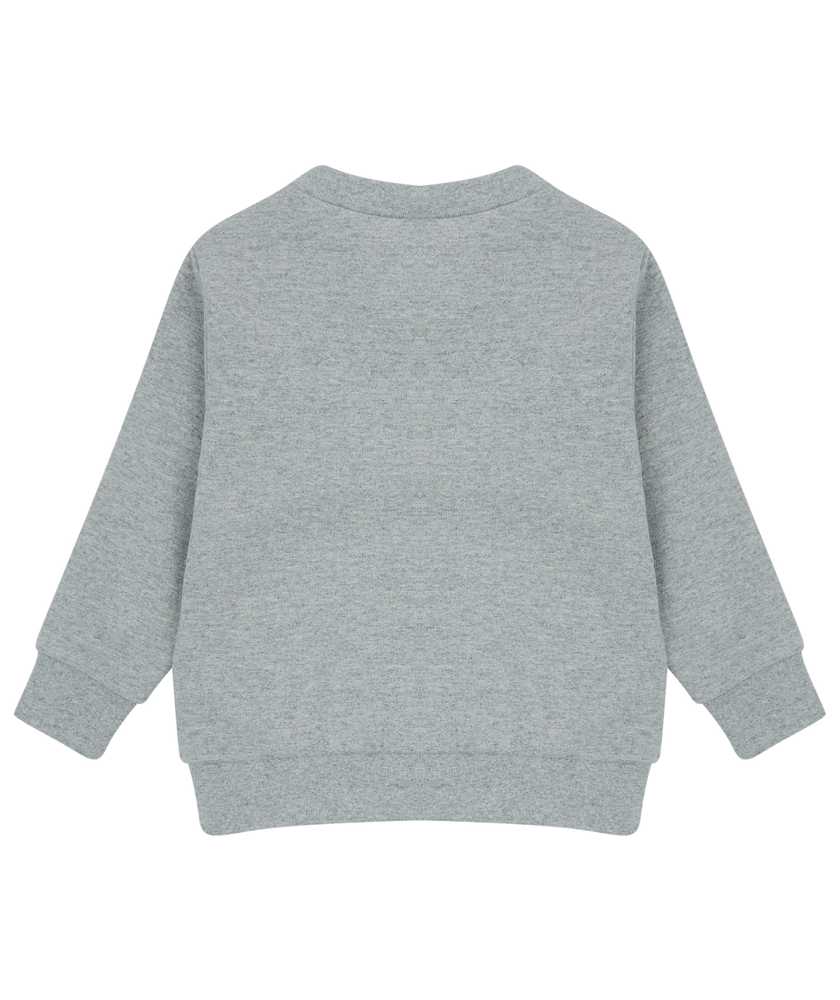 60% geregenereerd katoen / 40% gerecycleerd polyester. Sweater gemaakt van een duurzame stof. V-vormige flatlocknaden aan de halsopening. YKK-drukknopen op de schouder (behalve voor 3/4 jaar en 5/6 jaar).