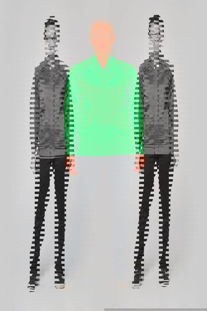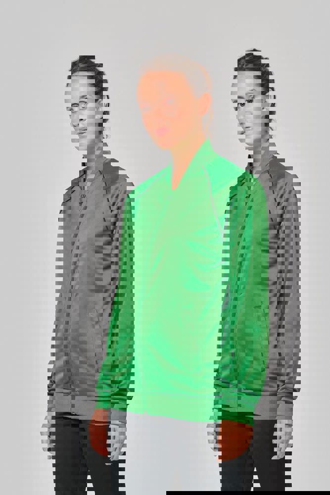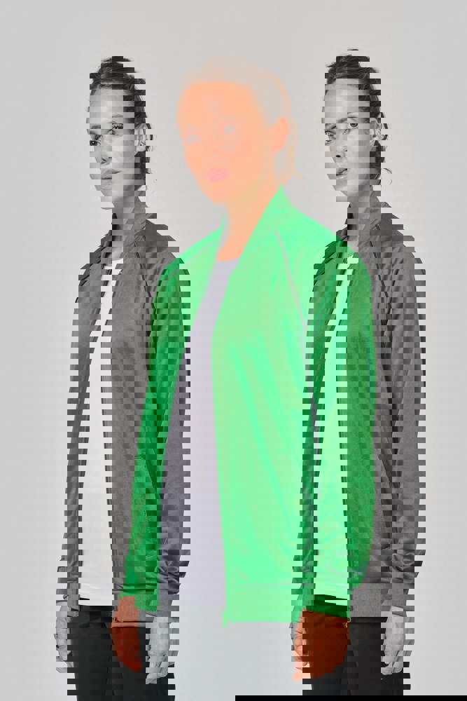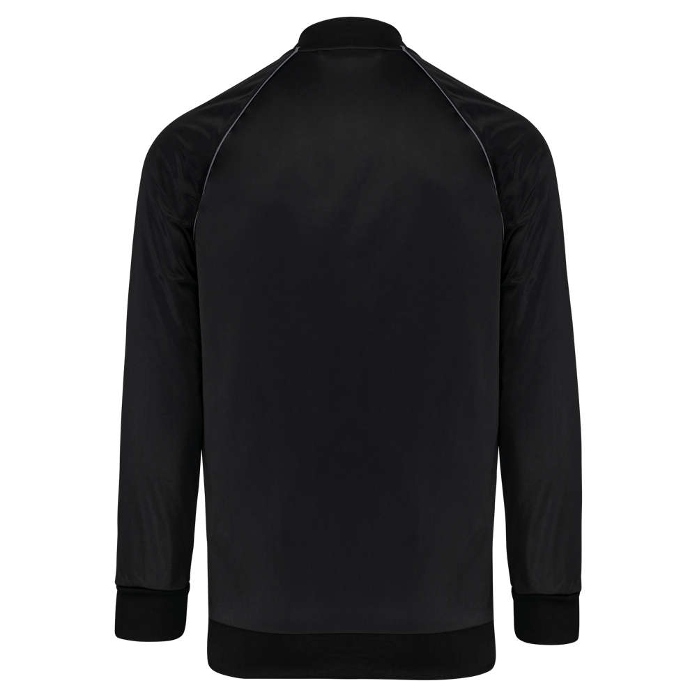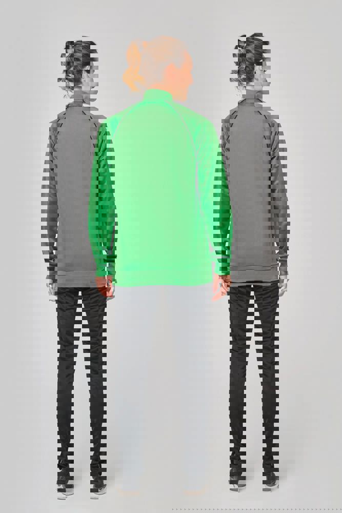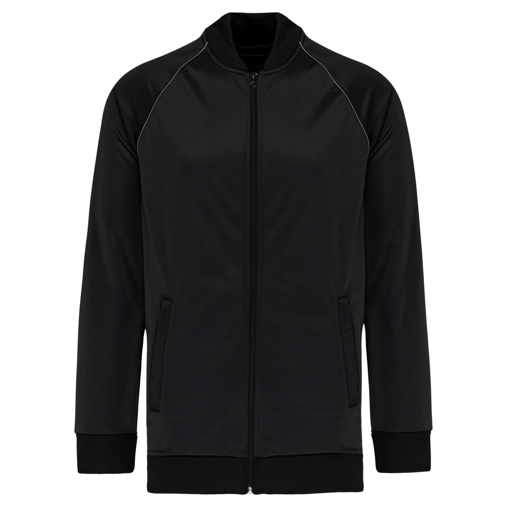 100% tricotpolyester. Rechte snit. Toon op toon ritssluiting in nylon. Raglanmouwen met contrasterend biesje. 1x1 ribboord aan kraag, mouwuiteinden en onderkant. 2 ritszakken aan de zijkant. Afneembaar merklabel voor eenvoudige personalisatie.