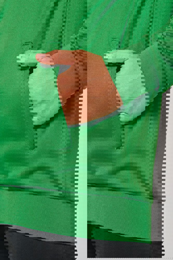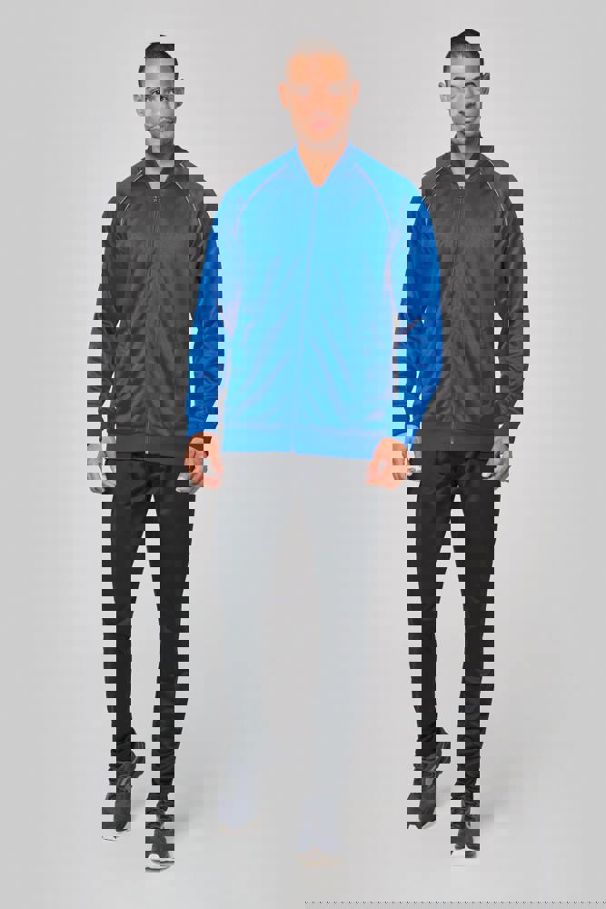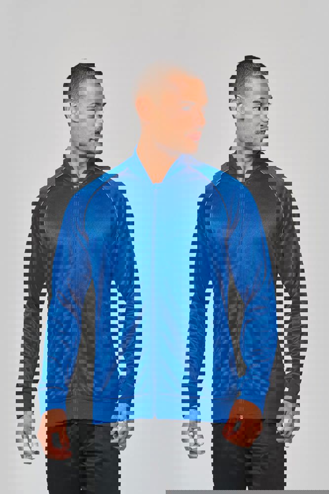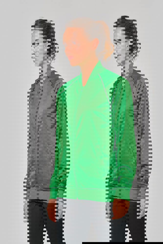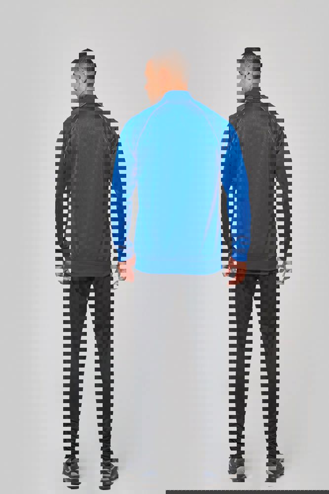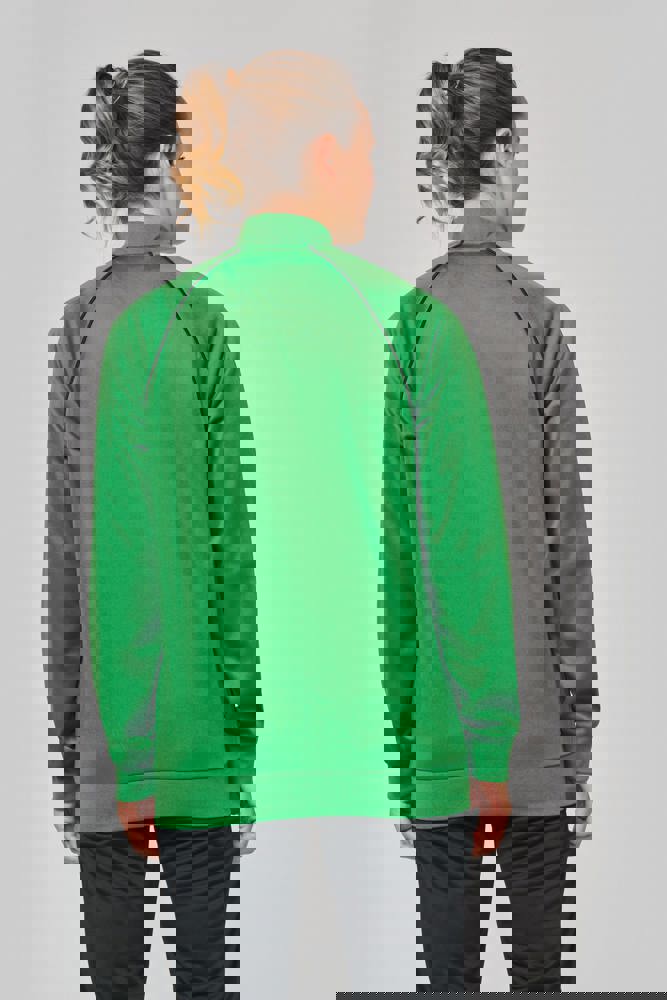 100% tricotpolyester. Rechte snit. Toon op toon ritssluiting in nylon. Raglanmouwen met contrasterend biesje. 1x1 ribboord aan kraag, mouwuiteinden en onderkant. 2 ritszakken aan de zijkant. Afneembaar merklabel voor eenvoudige personalisatie.