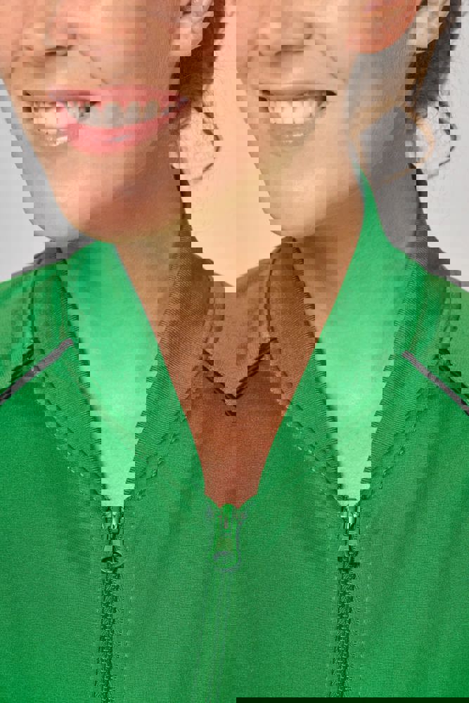 100% tricotpolyester. Rechte snit. Toon op toon ritssluiting in nylon. Raglanmouwen met...meer