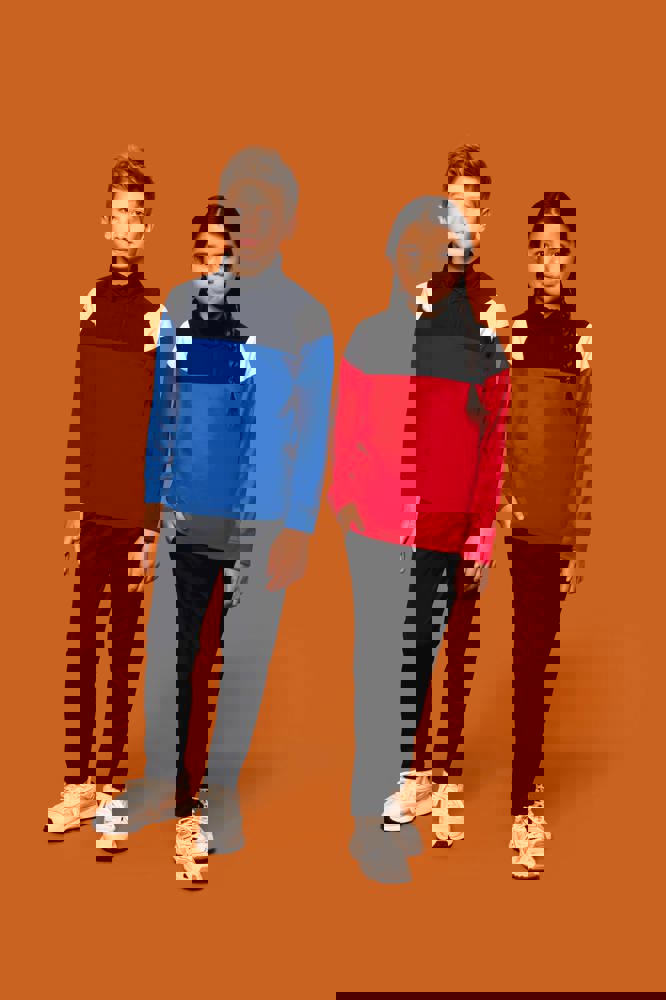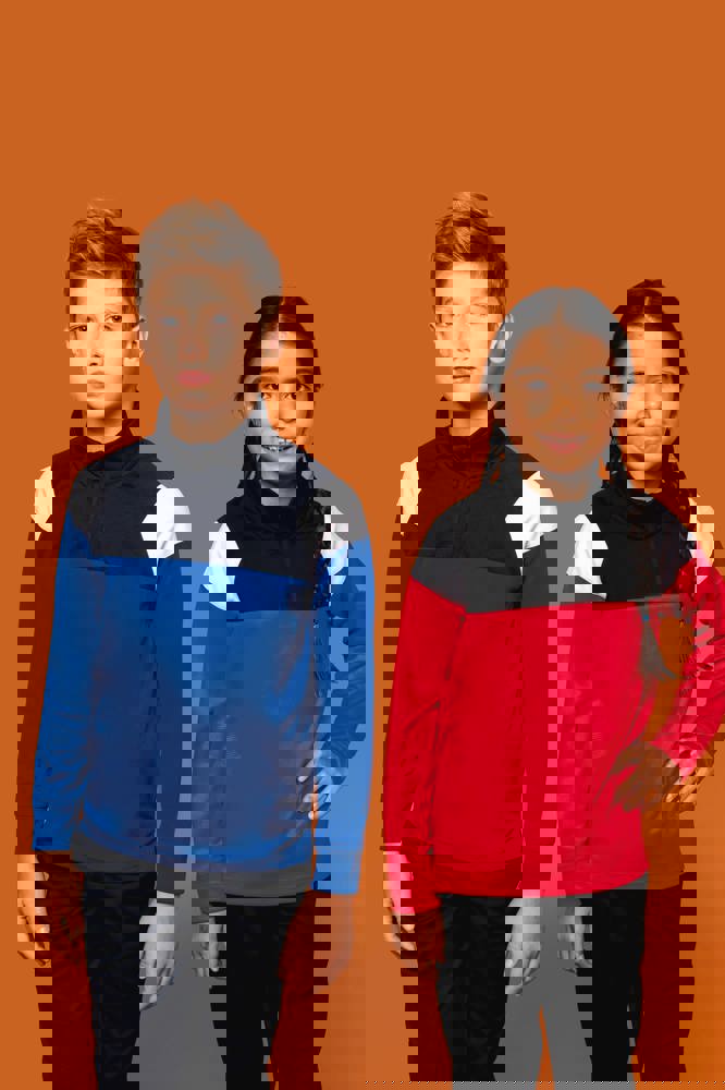 100% mat interlockpolyester. Rechte snit. Kraag met een omgekeerde ton-sur-ton nylonrits. Raglanmouwen met contrasterende inzetsels aan de schouder. Contrasterend inzetsel aan schouder en borst. Inzetstukken in textuurstof opzij en achteraan. Zoom onderaan. Verlengd achterpand en zijsplitten voor meer bewegingsvrijheid. Ritsafdekking boven aan de kraag, voor meer comfort. Afneembaar merklabel voor eenvoudige personalisatie.