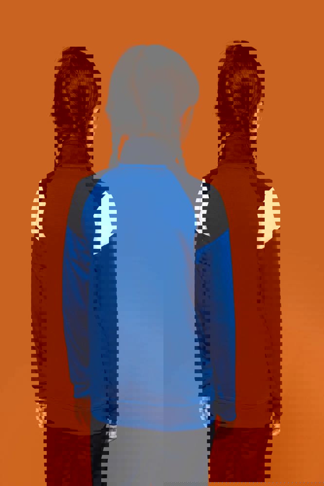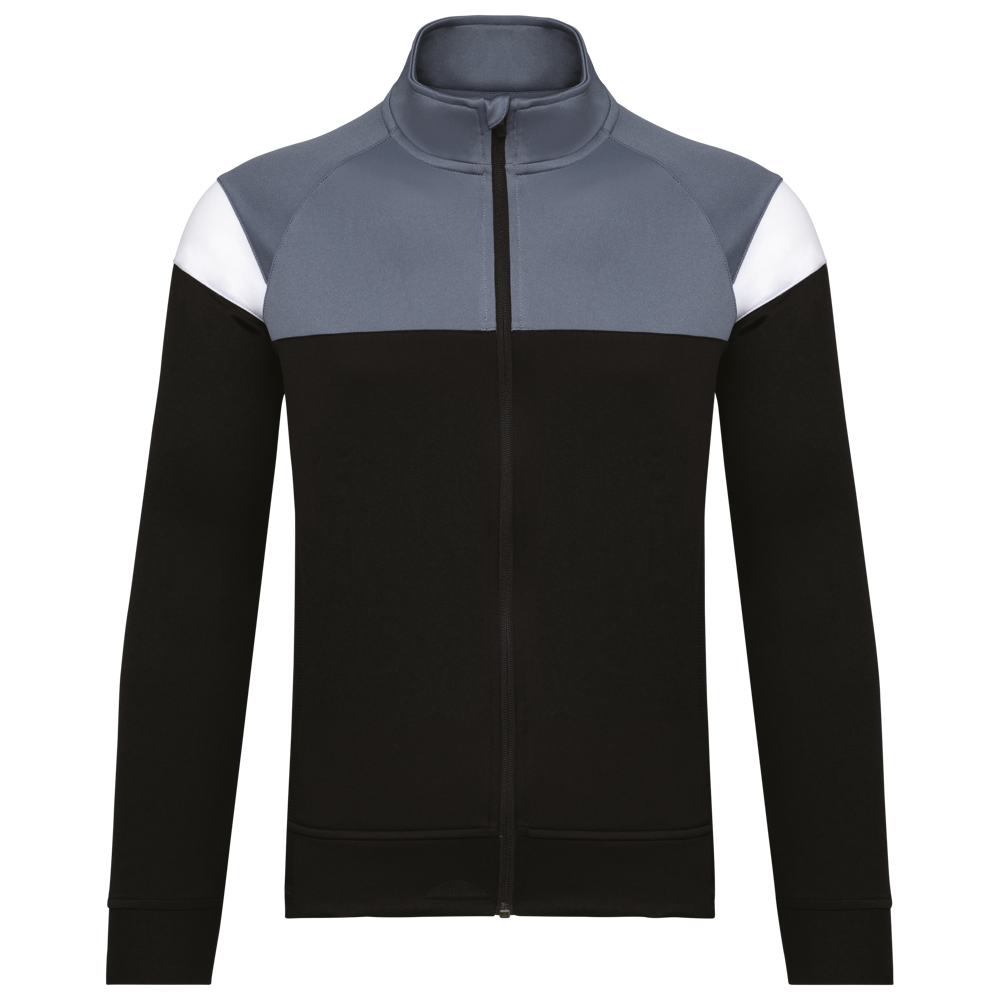 100% mat interlockpolyester. Rechte snit. Sluit vooraan met een omgekeerde ton-sur-ton nylonrits. Raglanmouwen met contrasterende inzetsels aan de schouder. Contrasterend inzetsel aan schouder en borst. Aangezette boord in de hoofdstof aan de mouwuiteinden en de onderkant. 2 ritszakken aan de voorkant. Inzetstukken in textuurstof opzij en achteraan. Ritsafdekking boven aan de kraag, voor meer comfort. Afneembaar merklabel voor eenvoudige personalisatie.