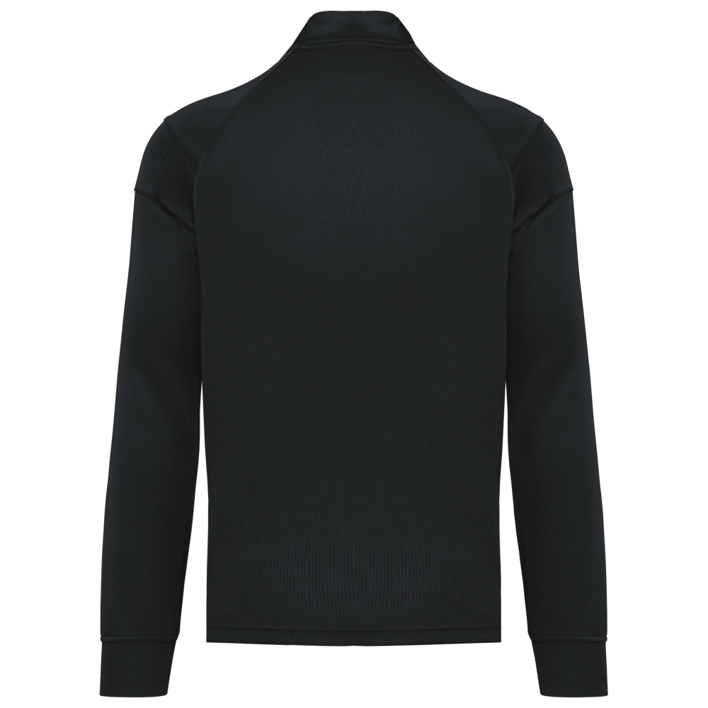 96% gerecycleerd polyester / 4% elasthan. Rechte snit. Sluit vooraan met een omgekeerde ton-sur-ton rits van gerecycleerd nylon. Raglanmouwen met inzetsels aan de schouder. Mouwuiteinden in de hoofdstof. 2 ritszakken aan de voorkant. Ton-sur-ton textuurstof opzij en achteraan. Ritsafdekking boven aan de kraag, voor meer comfort. Zoom onderaan. Verlengd achterpand en zijsplitten voor een grote bewegingsvrijheid. Afneembaar merklabel voor eenvoudige personalisatie.